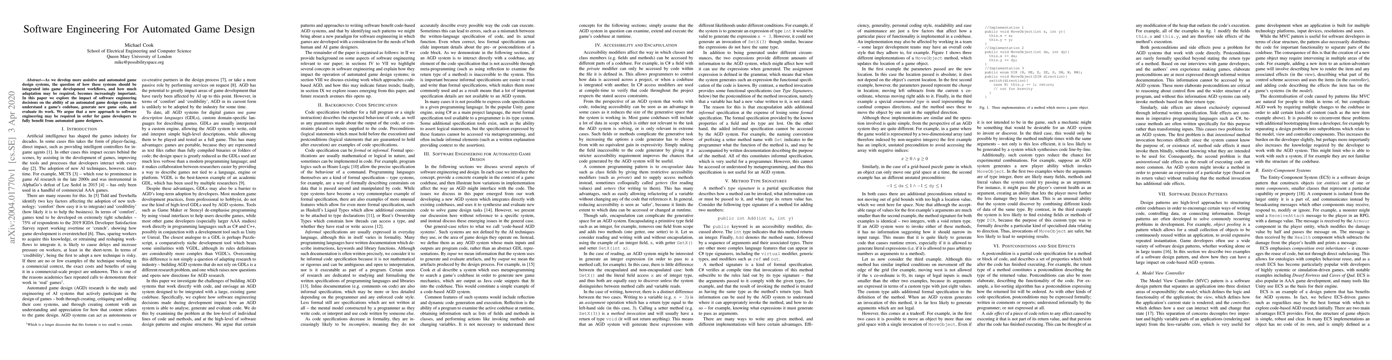 As we develop more assistive and automated game design systems, the question of how these systems should be integrated into game development workflows, and how much adaptation may be required, becomes increasingly important. In this paper we explore the impact of software engineering decisions on the ability of an automated game design system to understand a game's codebase, generate new game code, and evaluate its work. We argue that a new approach to software engineering may be required in order for game developers to fully benefit from automated game designers.