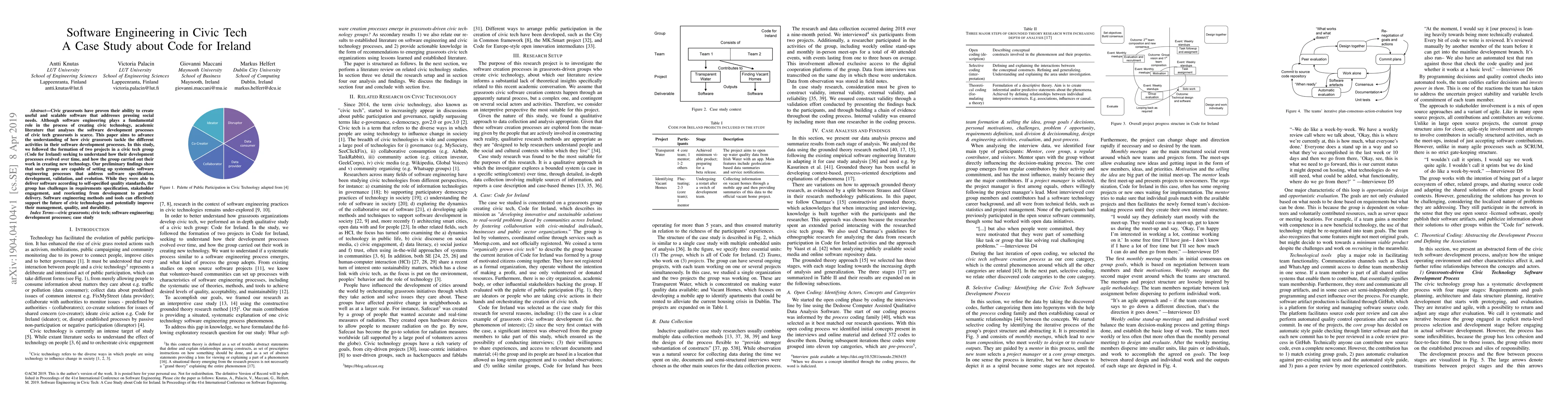 Civic grassroots have proven their ability to create useful and scalable software that addresses pressing social needs. Although software engineering plays a fundamental role in the process of creating civic technology, academic literature that analyses the software development processes of civic tech grassroots is scarce. This paper aims to advance the understanding of how civic grassroots tackle the different activities in their software development processes. In this study, we followed the formation of two projects in a civic tech group (Code for Ireland) seeking to understand how their development processes evolved over time, and how the group carried out their work in creating new technology. Our preliminary findings show that such groups are capable of setting up systematic software engineering processes that address software specification, development, validation, and evolution. While they were able to deliver software according to self-specified quality standards, the group has challenges in requirements specification, stakeholder engagement, and reorienting from development to product delivery. Software engineering methods and tools can effectively support the future of civic technologies and potentially improve their management, quality, and durability.