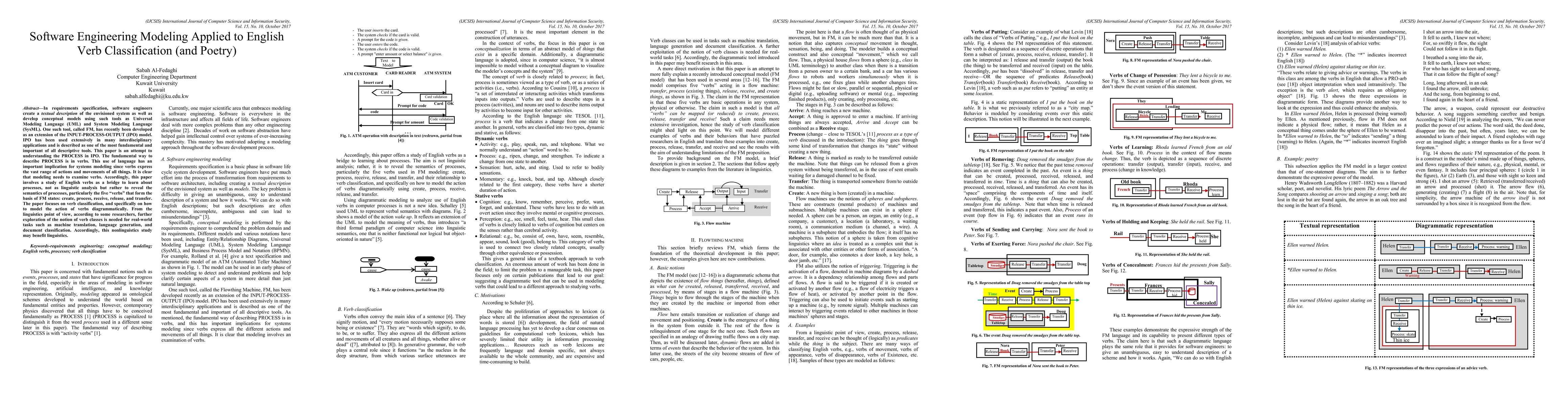 In requirements specification, software engineers create a textual description of the envisioned system as well as develop conceptual models using such tools as Universal Modeling Language (UML) and System Modeling Language (SysML). One such tool, called FM, has recently been developed as an extension of the INPUT-PROCESS-OUTPUT (IPO) model. IPO has been used extensively in many interdisciplinary applications and is described as one of the most fundamental and important of all descriptive tools. This paper is an attempt to understanding the PROCESS in IPO. The fundamental way to describe PROCESS is in verbs. This use of language has an important implication for systems modeling since verbs express the vast range of actions and movements of all things. It is clear that modeling needs to examine verbs. Accordingly, this paper involves a study of English verbs as a bridge to learn about processes, not as linguistic analysis but rather to reveal the semantics of processes, particularly the five verbs that form the basis of FM states: create, process, receive, release, and transfer. The paper focuses on verb classification, and specifically on how to model the action of verbs diagrammatically. From the linguistics point of view, according to some researchers, further exploration of the notion of verb classes is needed for real-world tasks such as machine translation, language generation, and document classification. Accordingly, this non-linguistics study may benefit linguistics.