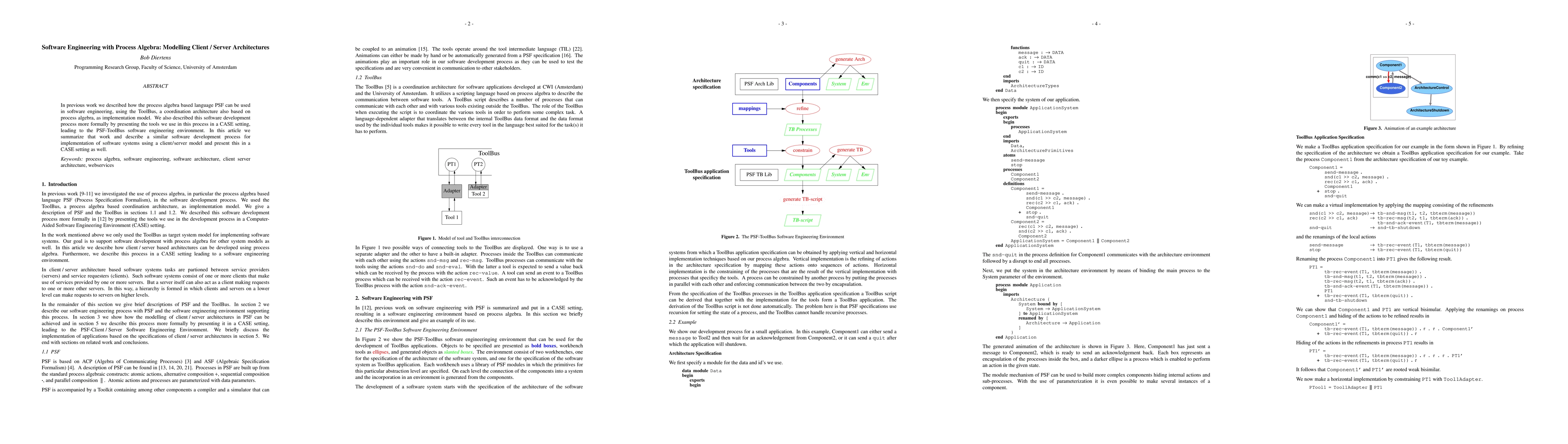 This paper summarizes the use of process algebra for software engineering, specifically focusing on the PSF language and ToolBus architecture, and extends this methodology to develop client/server systems within a CASE environment. The aim is to formalize and implement software development processes using these tools.