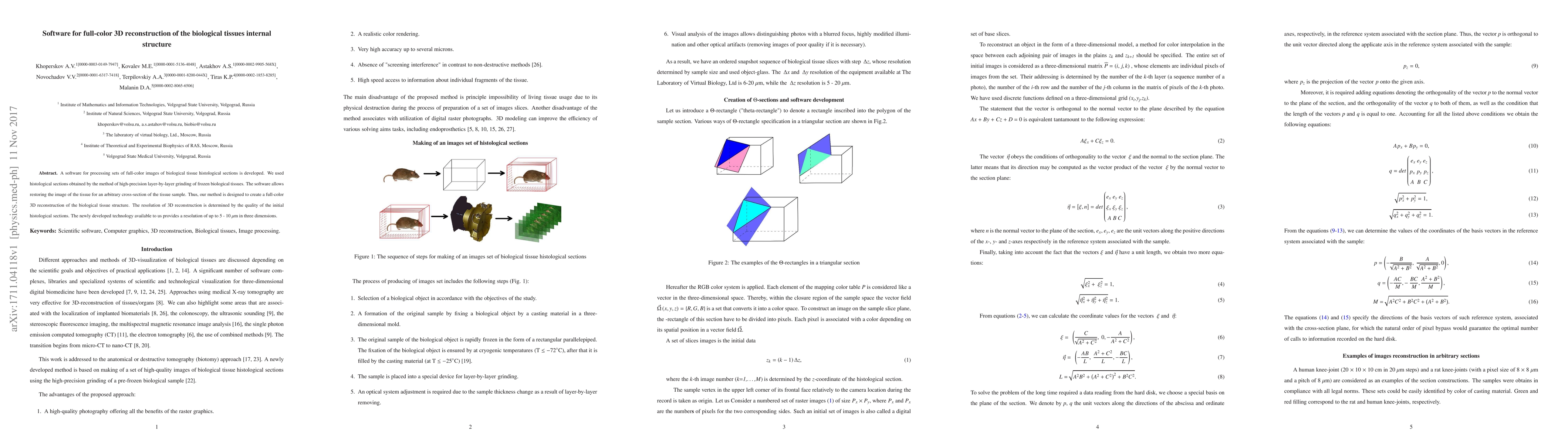 Researchers developed software to create 3D reconstructions of biological tissue structure from full-color images, with resolutions as low as 5-10 micrometers.