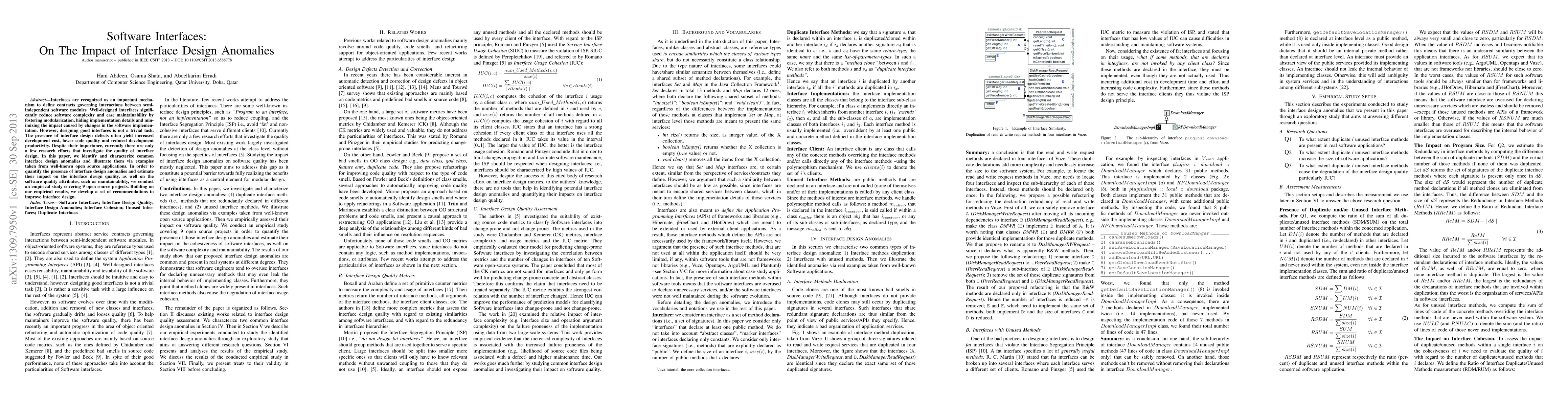 This paper identifies and characterizes common interface design anomalies in software interfaces, illustrating them with examples from open source applications. An empirical study of 9 open source projects quantifies these anomalies and assesses their impact on interface and software quality, leading to recommendations for improved interface design.