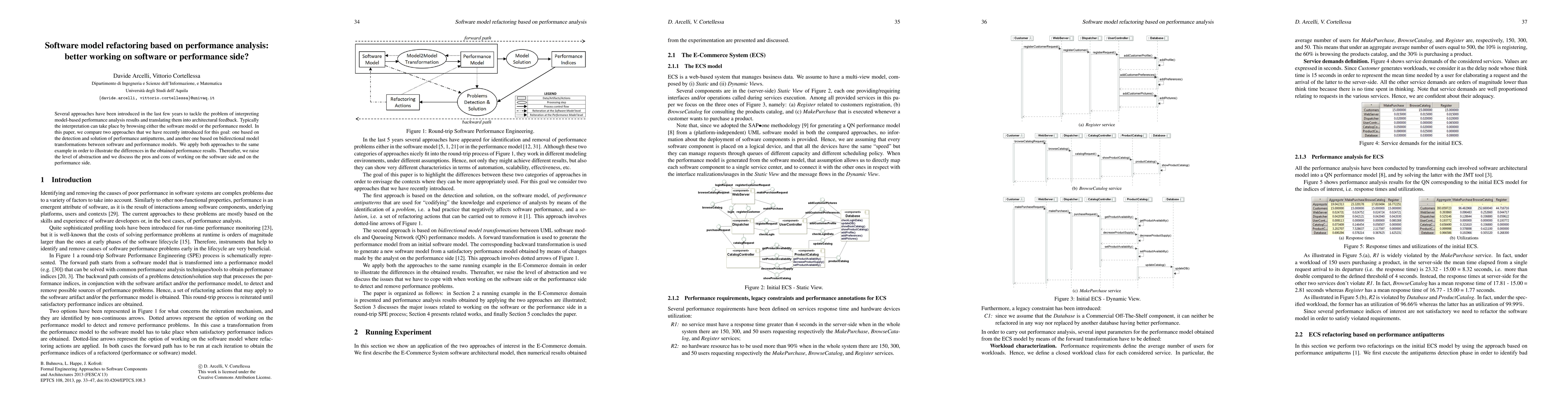 Several approaches have been introduced in the last few years to tackle the problem of interpreting model-based performance analysis results and translating them into architectural feedback. Typically the interpretation can take place by browsing either the software model or the performance model. In this paper, we compare two approaches that we have recently introduced for this goal: one based on the detection and solution of performance antipatterns, and another one based on bidirectional model transformations between software and performance models. We apply both approaches to the same example in order to illustrate the differences in the obtained performance results. Thereafter, we raise the level of abstraction and we discuss the pros and cons of working on the software side and on the performance side.