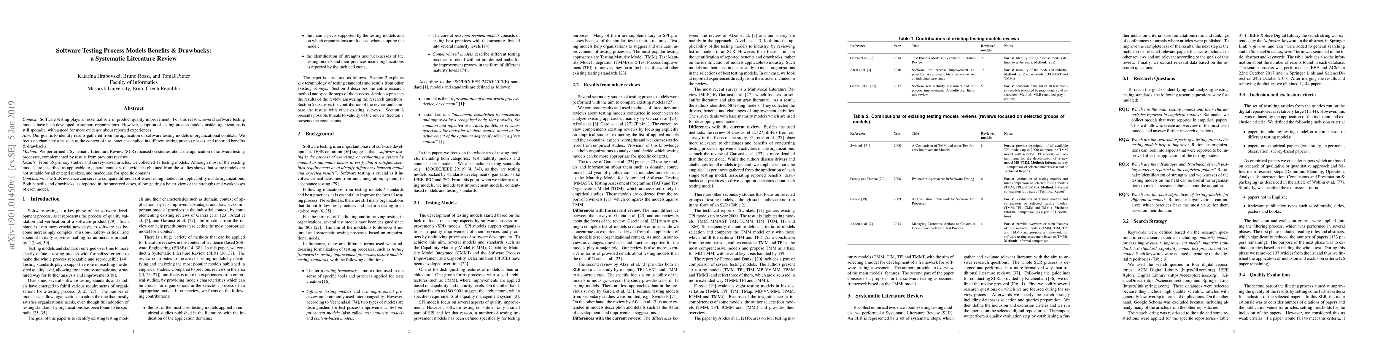 This paper systematically reviews software testing process models, identifying their benefits and drawbacks through organizational applications. The study finds that while many models are broadly applicable, they often lack suitability for specific enterprise sizes and domains, providing valuable insights into their strengths and weaknesses.