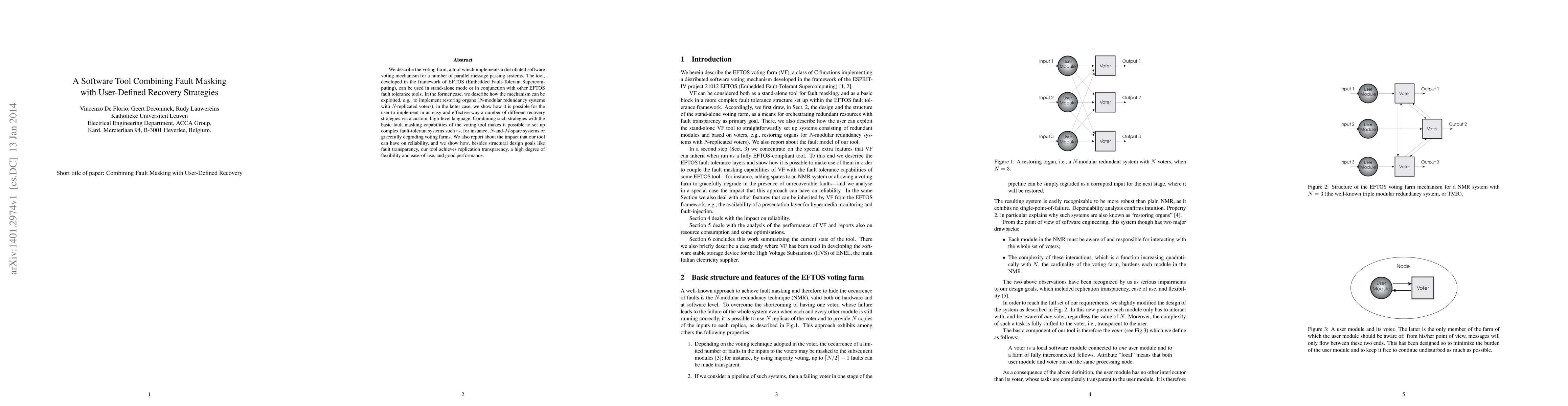 We describe the voting farm, a tool which implements a distributed software voting mechanism for a number of parallel message passing systems. The tool, developed in the framework of EFTOS (Embedded Fault-Tolerant Supercomputing), can be used in stand-alone mode or in conjunction with other EFTOS fault tolerance tools. In the former case, we describe how the mechanism can be exploited, e.g., to implement restoring organs ($N\!$-modular redundancy systems with $N\!$-replicated voters); in the latter case, we show how it is possible for the user to implement in an easy and effective way a number of different recovery strategies via a custom, high-level language. Combining such strategies with the basic fault masking capabilities of the voting tool makes it possible to set up complex fault-tolerant systems such as, for instance, $N$-and-$M$-spare systems or gracefully degrading voting farms. We also report about the impact that our tool can have on reliability, and we show how, besides structural design goals like fault transparency, our tool achieves replication transparency, a high degree of flexibility and ease-of-use, and good performance.