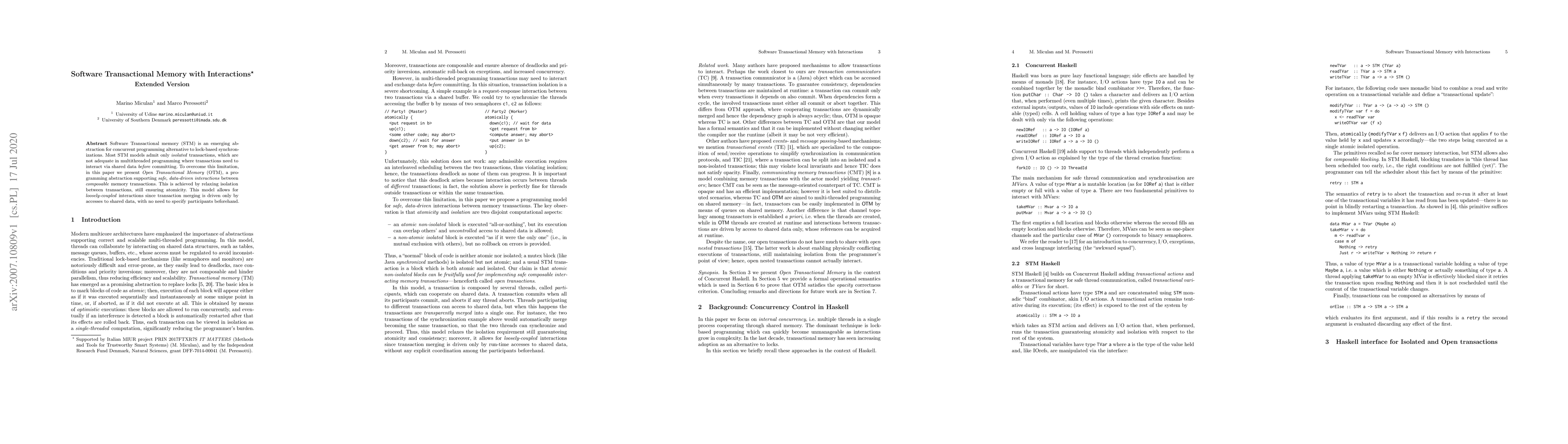 This paper introduces Open Transactional Memory (OTM), a novel abstraction for concurrent programming that allows safe, data-driven interactions between composable memory transactions, overcoming the limitations of isolated transactions in traditional STM models while maintaining atomicity. OTM enables loosely-coupled interactions driven by shared data access without predefined transaction participants.