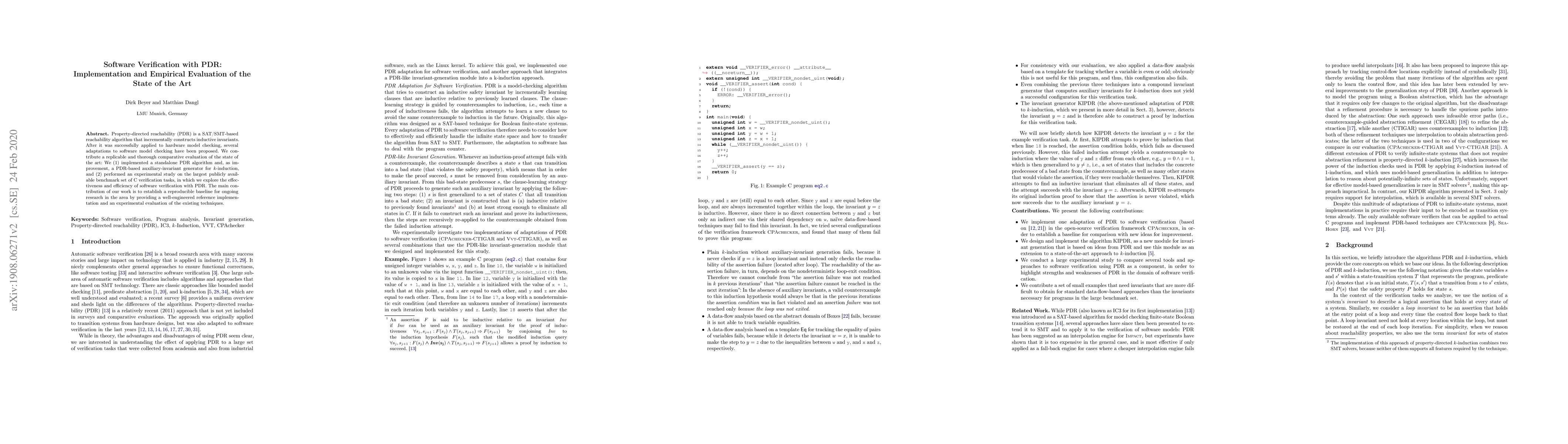 This paper implements a PDR algorithm and a PDR-based auxiliary-invariant generator for k-induction, and conducts an extensive empirical evaluation on a large C verification benchmark set to assess the effectiveness and efficiency of PDR in software verification. The study aims to establish a reproducible baseline for future research in this field.