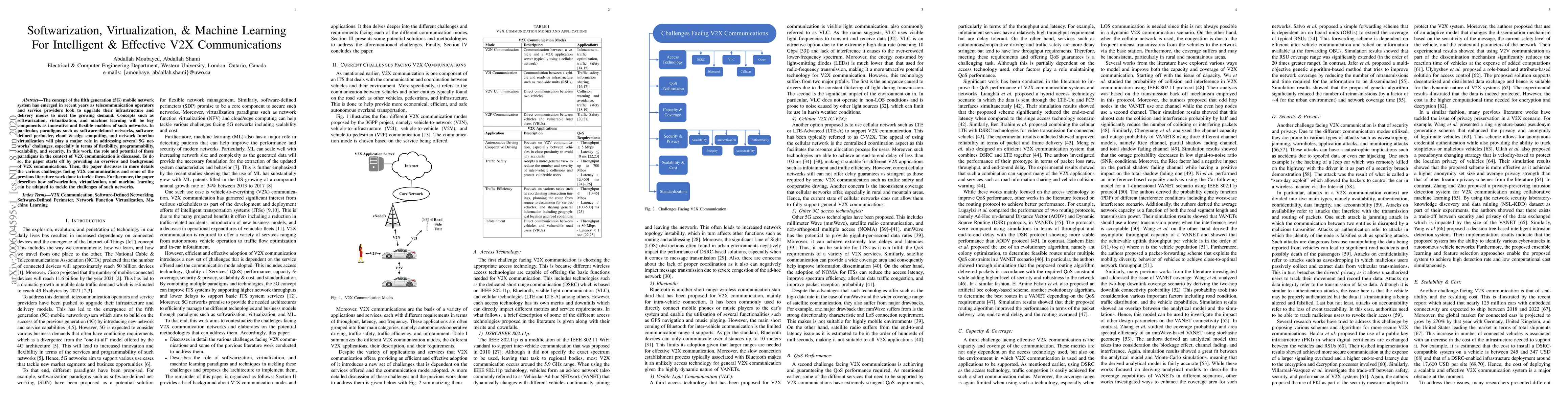 The concept of the fifth generation (5G) mobile network system has emerged in recent years as telecommunication operators and service providers look to upgrade their infrastructure and delivery modes to meet the growing demand. Concepts such as softwarization, virtualization, and machine learning will be key components as innovative and flexible enablers of such networks. In particular, paradigms such as software-defined networks, software-defined perimeter, cloud & edge computing, and network function virtualization will play a major role in addressing several 5G networks' challenges, especially in terms of flexibility, programmability, scalability, and security. In this work, the role and potential of these paradigms in the context of V2X communication is discussed. To do so, the paper starts off by providing an overview and background of V2X communications. Then, the paper discusses in more details the various challenges facing V2X communications and some of the previous literature work done to tackle them. Furthermore, the paper describes how softwarization, virtualization, and machine learning can be adapted to tackle the challenges of such networks.