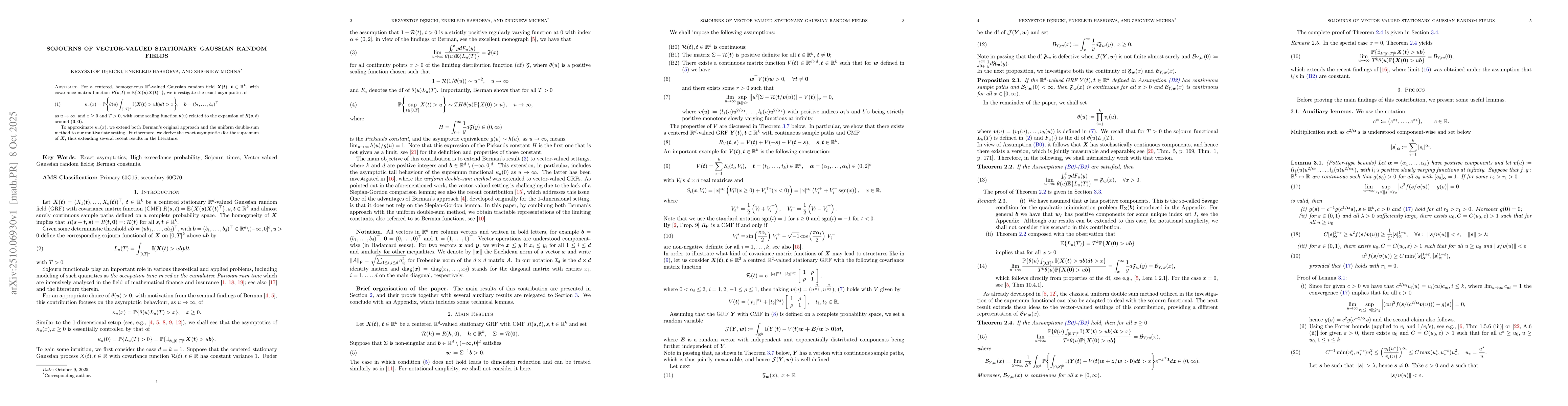 This work extends existing results from univariate to multivariate settings, introduces new analytical techniques for handling vector-valued processes, and provides explicit formulas for Berman functions that were previously only known in special cases.