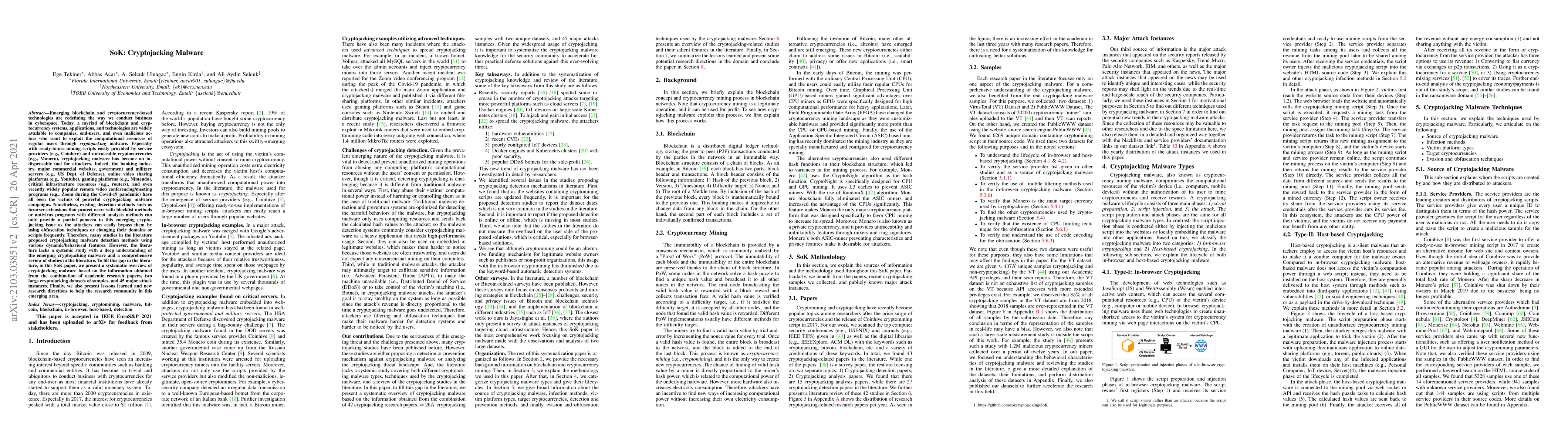 This paper reviews the rise of cryptojacking malware exploiting blockchain and cryptocurrency technologies to hijack computational resources. It highlights the vulnerabilities of various sectors, including banking and government, and discusses the limitations of existing detection methods, emphasizing the need for advanced detection techniques leveraging dynamic/behavioral features.
