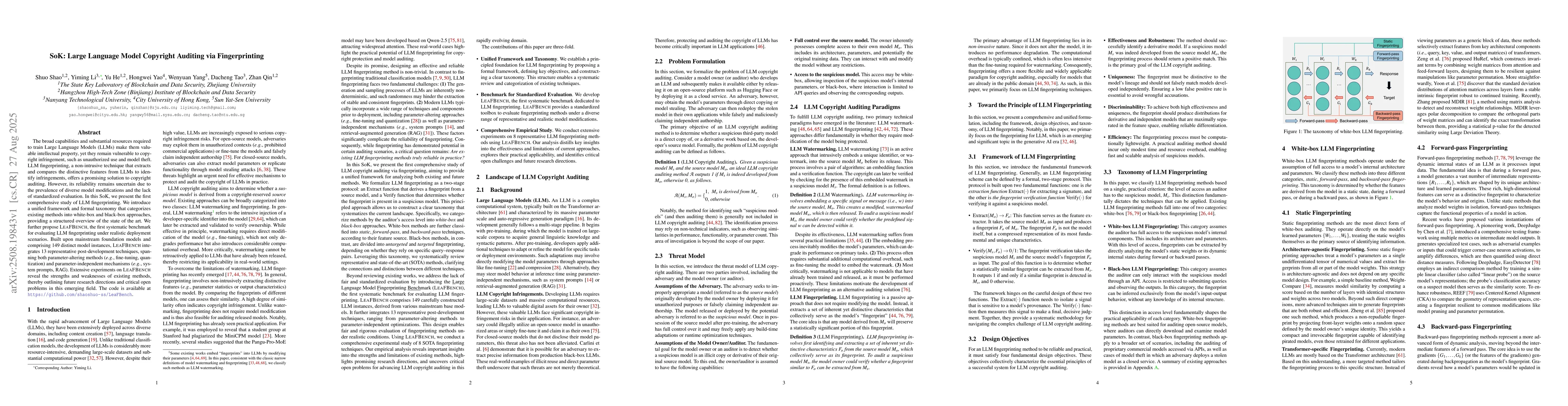 The broad capabilities and substantial resources required to train Large Language Models (LLMs) make them valuable intellectual property, yet they remain vulnerable to copyright infringement, such as unauthorized use and model theft. LLM fingerprinting, a non-intrusive technique that extracts and compares the distinctive features from LLMs to identify infringements, offers a promising solution to copyright auditing. However, its reliability remains uncertain due to the prevalence of diverse model modifications and the lack of standardized evaluation. In this SoK, we present the first comprehensive study of LLM fingerprinting. We introduce a unified framework and formal taxonomy that categorizes existing methods into white-box and black-box approaches, providing a structured overview of the state of the art. We further propose LeaFBench, the first systematic benchmark for evaluating LLM fingerprinting under realistic deployment scenarios. Built upon mainstream foundation models and comprising 149 distinct model instances, LeaFBench integrates 13 representative post-development techniques, spanning both parameter-altering methods (e.g., fine-tuning, quantization) and parameter-independent mechanisms (e.g., system prompts, RAG). Extensive experiments on LeaFBench reveal the strengths and weaknesses of existing methods, thereby outlining future research directions and critical open problems in this emerging field. The code is available at https://github.com/shaoshuo-ss/LeaFBench.