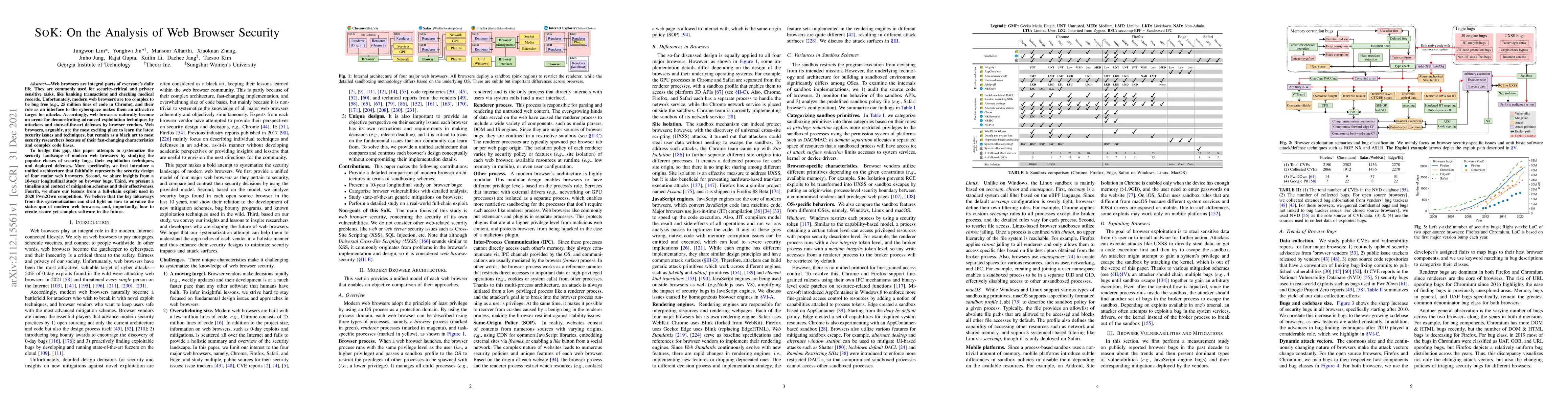 This paper systematizes the security landscape of modern web browsers by analyzing popular security bugs, exploitation techniques, and defenses. It introduces a unified architecture of major browsers, shares insights from a decade-long study on browser vulnerabilities, and discusses the effectiveness of mitigation schemes and the impact of bug bounty programs.