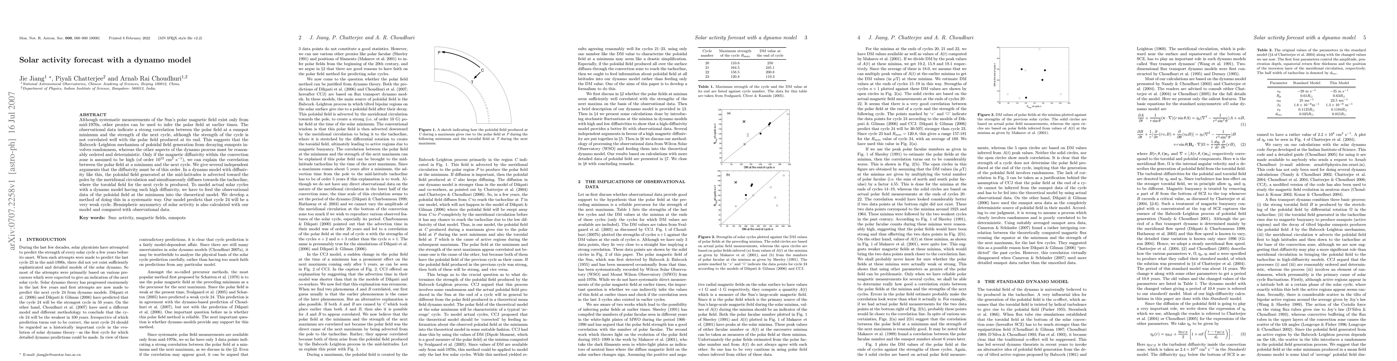 This paper develops a dynamo model to forecast solar activity, emphasizing the importance of high magnetic diffusivity in explaining the correlation between the solar polar magnetic field and the strength of subsequent cycles. The model predicts a weak cycle 24 and calculates hemispheric asymmetry, comparing results with observational data.