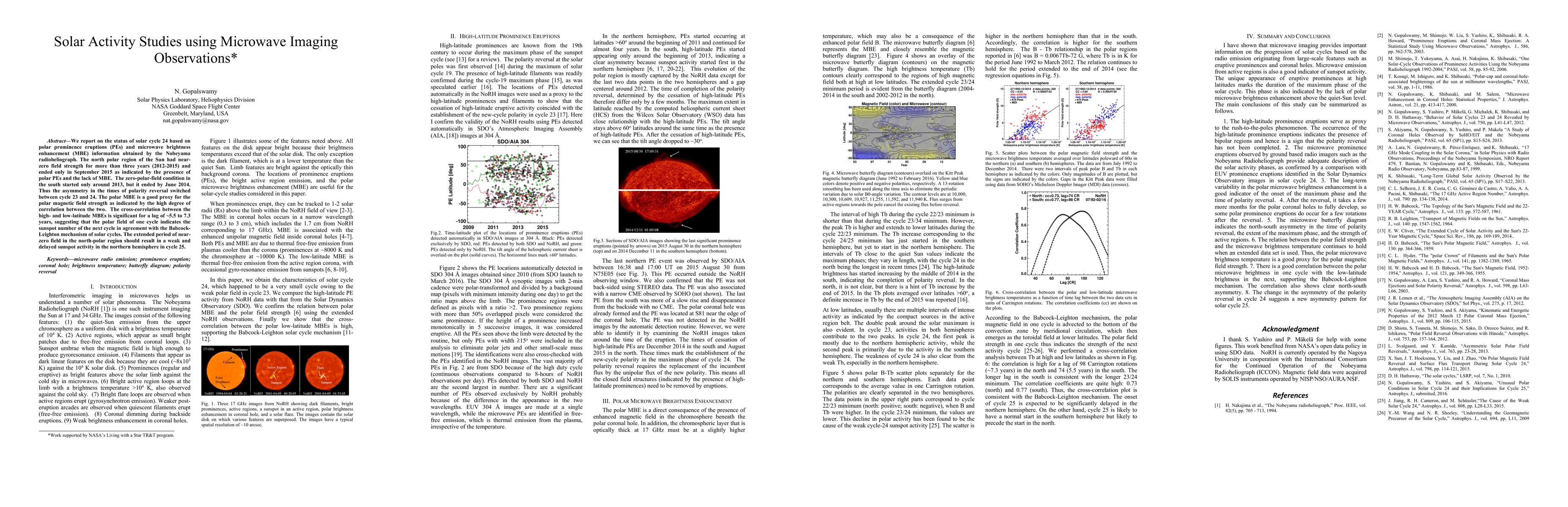 Researchers studied solar cycle 24 using microwave imaging observations and found that a near-zero magnetic field in the north polar region led to weak sunspot activity in the northern hemisphere, while a delayed start of this condition in the south may indicate a stronger cycle 25.