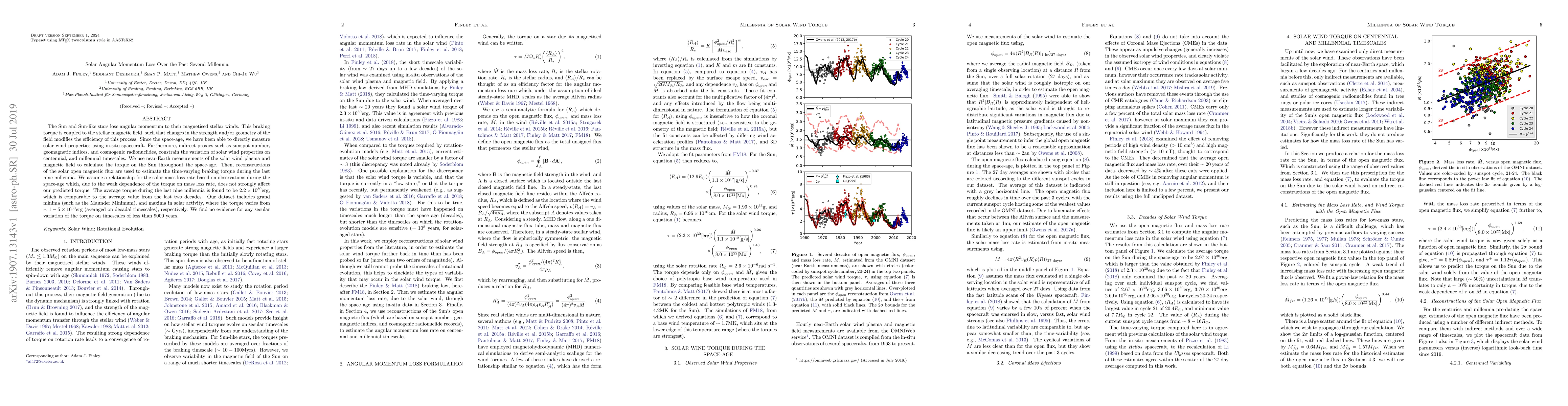 This research calculates the average solar angular momentum loss over the past nine millennia, finding it comparable to the space-age average. Utilizing spacecraft measurements and proxies like sunspot numbers, the study reveals the torque varied between 1-5×10^30 erg during grand minima and maxima, with no discernible long-term change in torque over 9000 years.