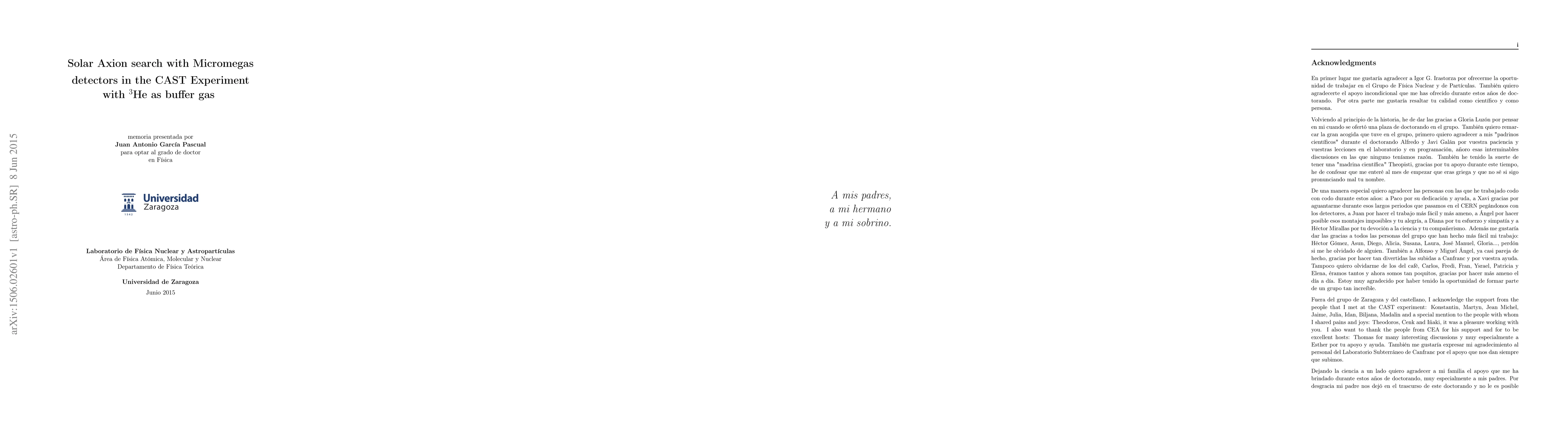 This paper details the search for solar axions using the CAST experiment's Micromegas detectors with $^{3}$He as buffer gas, achieving a limit on the coupling constant of g$_{a \gamma}$ < 3.90 $\times$ 10$^{-10}$ GeV$^{-1}$ at a 95% confidence level. The study also outlines improvements in low background techniques and proposes the IAXO project, which aims to surpass CAST's sensitivity by an order of magnitude.
