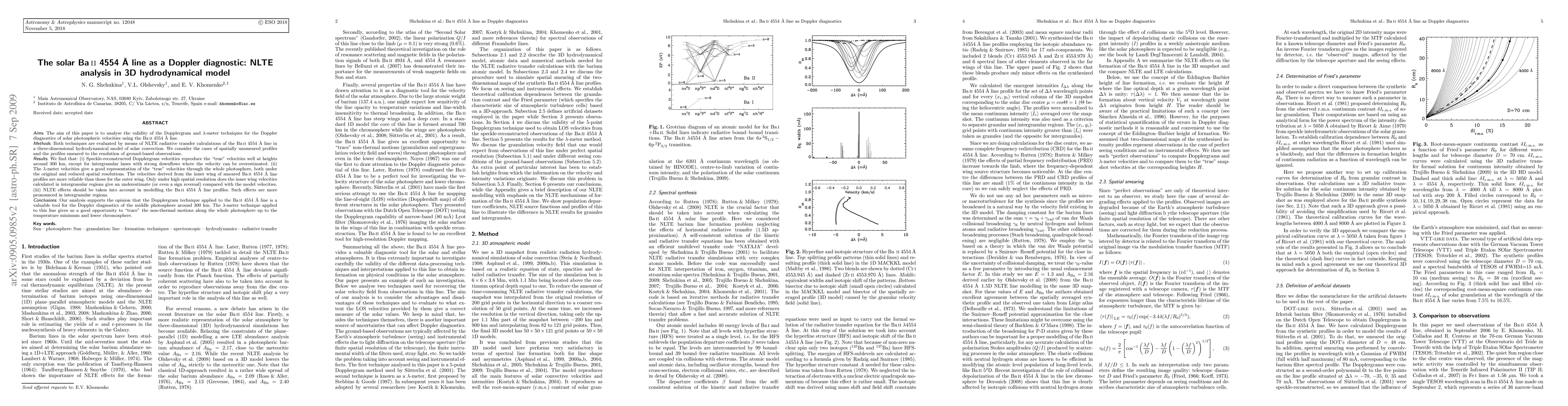 This paper evaluates the Dopplergram and lambda-meter techniques for diagnosing solar photospheric velocities using the BaII 4554 A line, finding that the Dopplergram works well at 300 km but can overestimate velocities in strong downflows, while the lambda-meter provides reliable velocities throughout the photosphere. NLTE effects are significant, especially in intergranular regions.