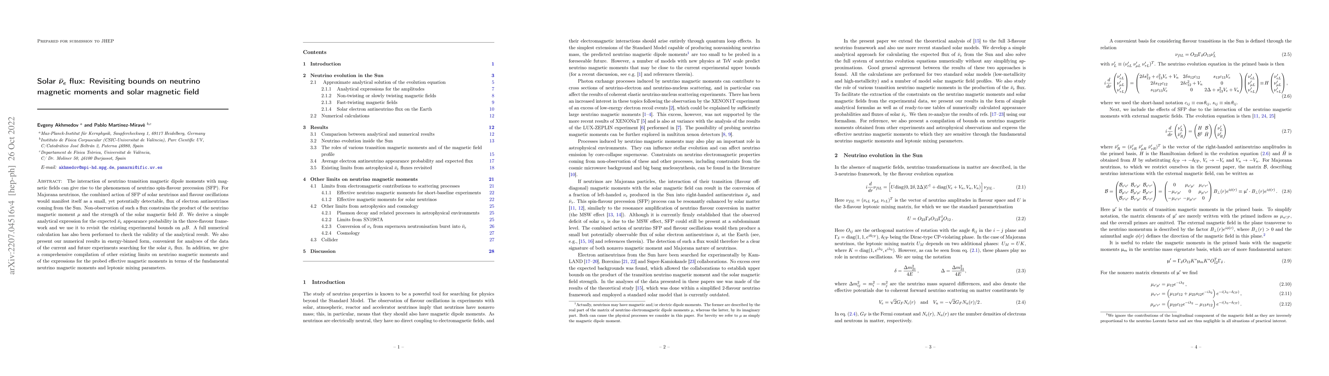 This paper revisits experimental bounds on neutrino magnetic moments ($\mu$) and solar magnetic fields ($B$), using the phenomenon of neutrino spin-flavour precession. It derives an analytical expression for the electron antineutrino flux from the Sun and compares it with numerical calculations to update existing limits.