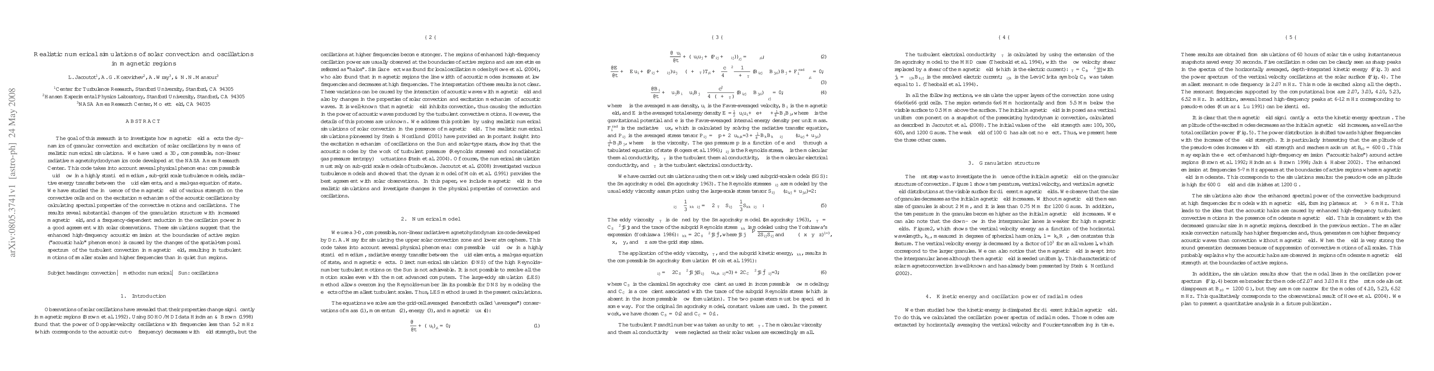 The goal of this research is to investigate how magnetic field affects the dynamics of granular convection and excitation of solar oscillations by means of realistic numerical simulations. We have used a 3D, compressible, non-linear radiative magnetohydrodynamics code developed at the NASA Ames Research Center. This code takes into account several physical phenomena: compressible fluid flow in a highly stratified medium, sub-grid scale turbulence models, radiative energy transfer between the fluid elements, and a real-gas equation of state. We have studied the influence of the magnetic field of various strength on the convective cells and on the excitation mechanisms of the acoustic oscillations by calculating spectral properties of the convective motions and oscillations. The results reveal substantial changes of the granulation structure with increased magnetic field, and a frequency-dependent reduction in the oscillation power in a good agreement with solar observations. These simulations suggest that the enhanced high-frequency acoustic emission at the boundaries of active region ("acoustic halo" phenomenon) is caused by the changes of the spatial-temporal spectrum of the turbulent convection in magnetic field, resulting in turbulent motions of smaller scales and higher frequencies than in quiet Sun regions.