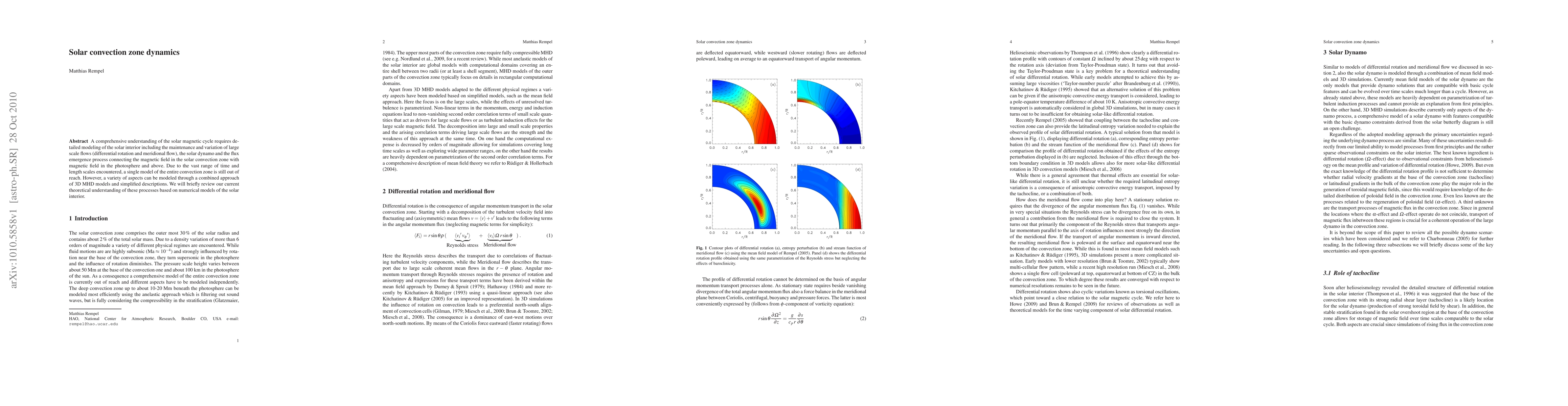 This paper reviews the current theoretical understanding of solar convection zone dynamics, focusing on large-scale flows and the solar dynamo, using combined 3D MHD models and simplified descriptions to bridge the gap in modeling the entire convection zone. The study highlights the complexity of connecting magnetic field variations in the convection zone to those in the photosphere.