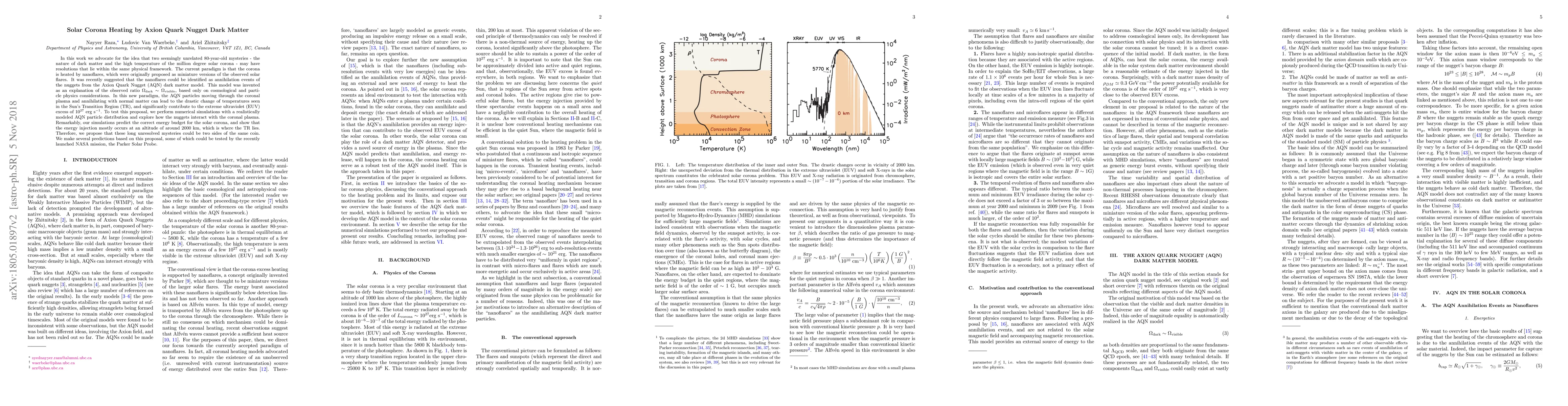 Researchers propose a new explanation for the solar corona's high temperature, suggesting that axion quark nugget dark matter particles could be responsible for heating it through annihilation events.