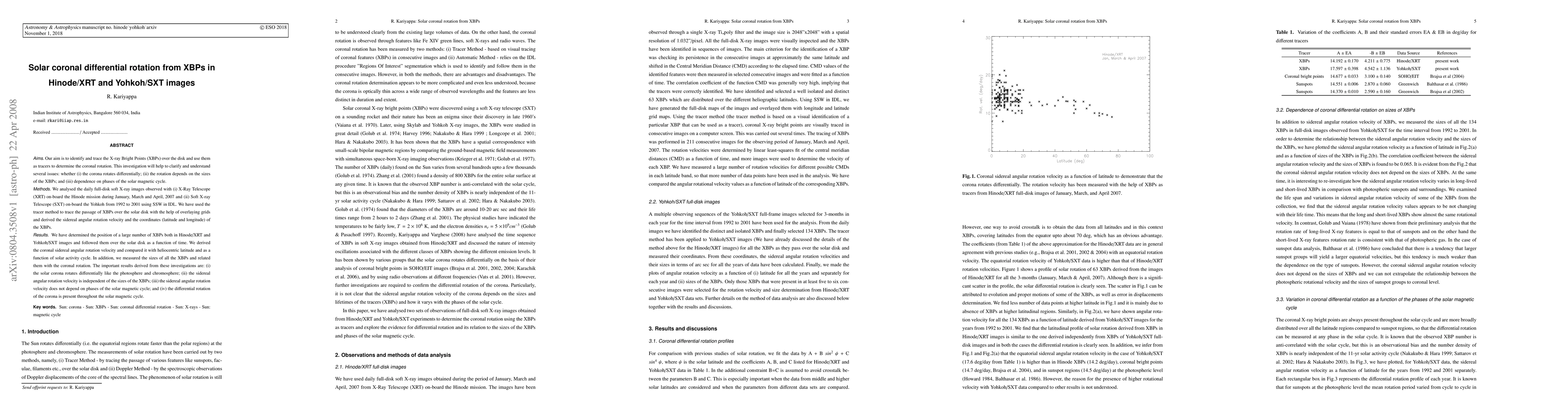 This study traces X-ray Bright Points (XBPs) in Hinode/XRT and Yohkoh/SXT images to determine the solar coronal differential rotation, finding that the corona rotates differentially, independent of XBP sizes and solar magnetic cycle phases.