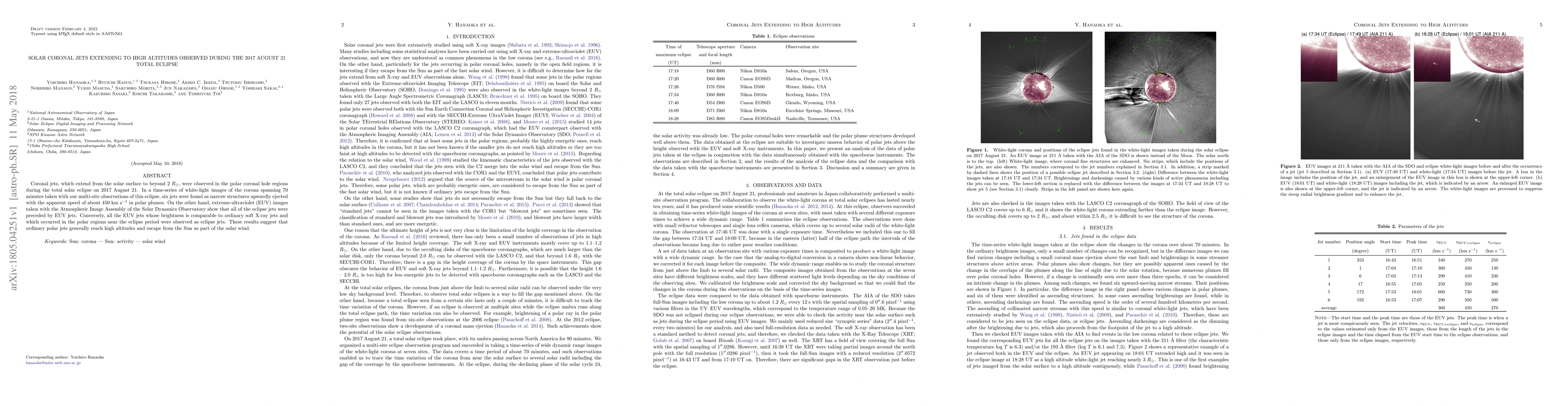 This study observed coronal jets extending beyond 2 solar radii during the 2017 August 21 total solar eclipse, revealing six jets in polar coronal holes with speeds of about 450 km s$^{-1}$. The findings suggest that ordinary polar jets can reach high altitudes and contribute to the solar wind.
