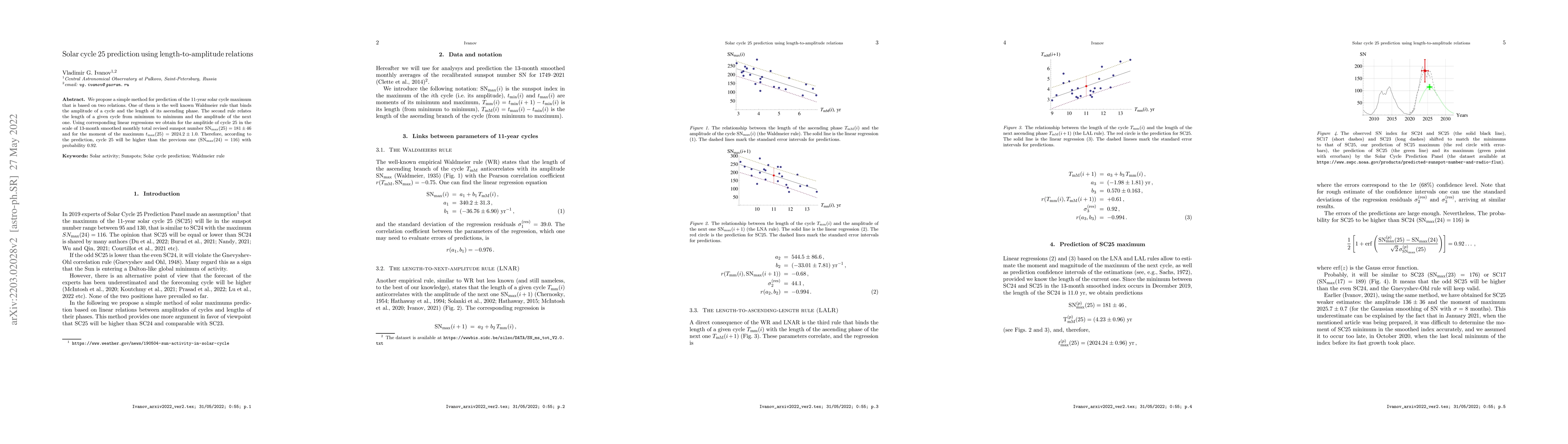 We propose a simple method for prediction of the 11-year solar cycle maximum that is based on two relations. One of them is well known Waldmeier's rule that binds the amplitude of a cycle and the length of its ascending phase. The second rule relates the length of a given cycle from minimum to minimum and the amplitude of the next one. Using corresponding linear regressions we obtain for the amplitide of cycle 25 in the scale of 13-month smoothed monthly total revised sunspot number ${\rm SN}_{\rm max}(25) = 181\pm46$ and for the moment of the maximum $T_{\rm max}(25) = 2024.2\pm1.0$. Therefore, according to the prediction, cycle 25 will be higher than the previous one (${\rm SN}_{\rm max}(24) = 116$) with probability 0.92.