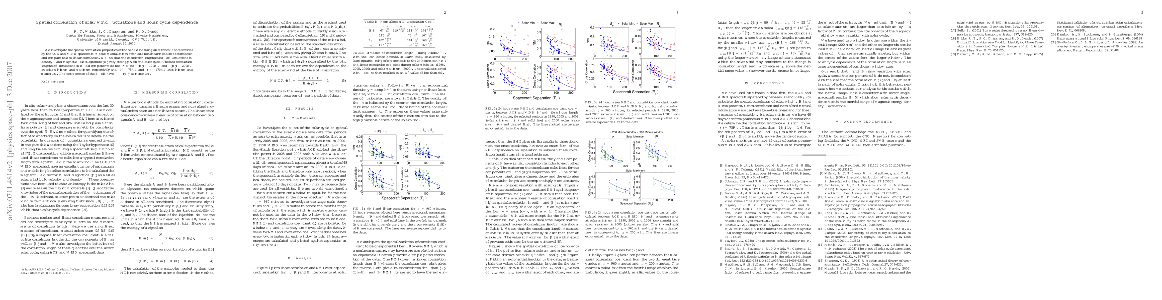 The paper introduces a method for analyzing spatial correlation in the solar wind using mutual information and compares it with linear correlation, providing insights into the solar cycle dependence of these properties.