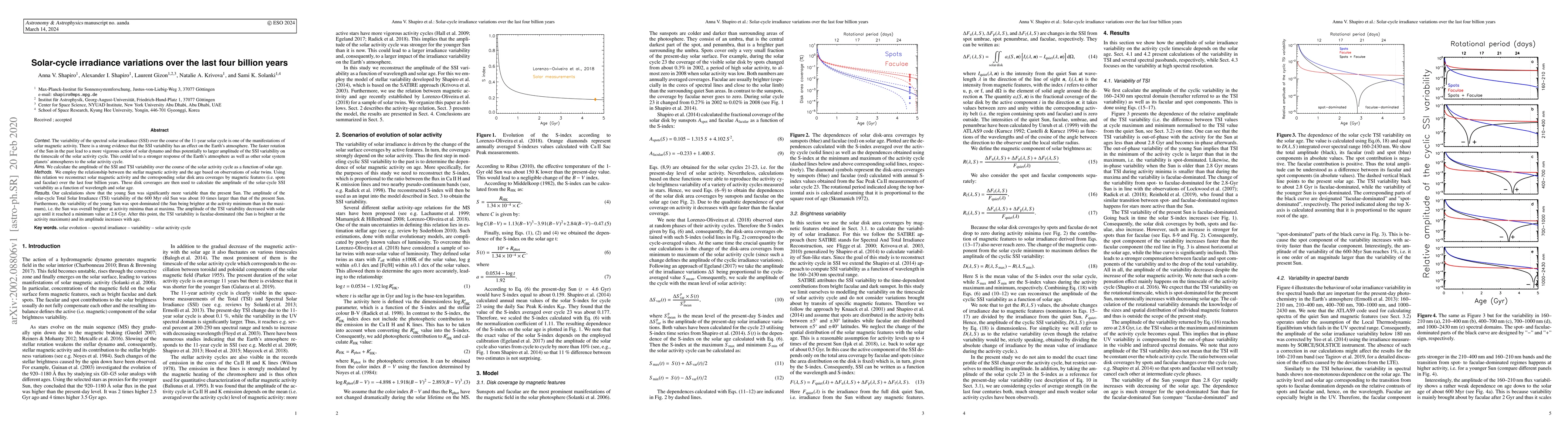 This paper investigates the variability of solar spectral irradiance (SSI) over the last four billion years, finding that the young Sun exhibited significantly higher variability than the present Sun, with the amplitude of Total Solar Irradiance (TSI) variability being about ten times larger. The study shows that the young Sun's variability was spot-dominated, making it brighter during activity minima, while the older Sun's variability became faculae-dominated, increasing with age.