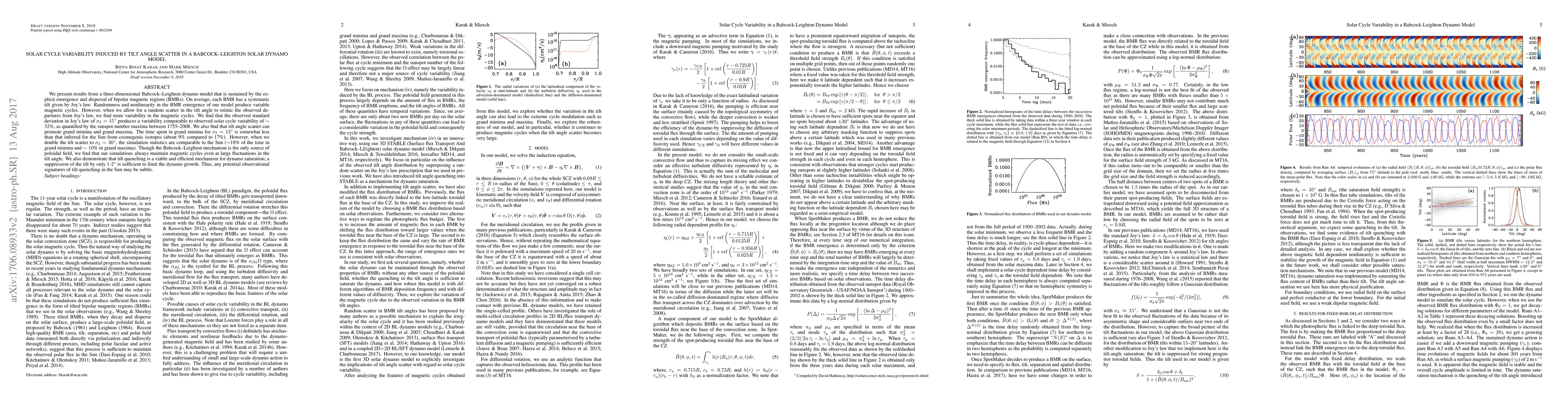 This paper explores how variability in the tilt angle of bipolar magnetic regions in a Babcock-Leighton dynamo model can induce significant solar cycle variability. The study finds that a tilt scatter of $\sigma_\delta = 15^\circ$ can produce solar cycle variability comparable to historical observations, while doubling the scatter to $\sigma_\delta = 30^\circ$ matches solar grand minima and maxima statistics.