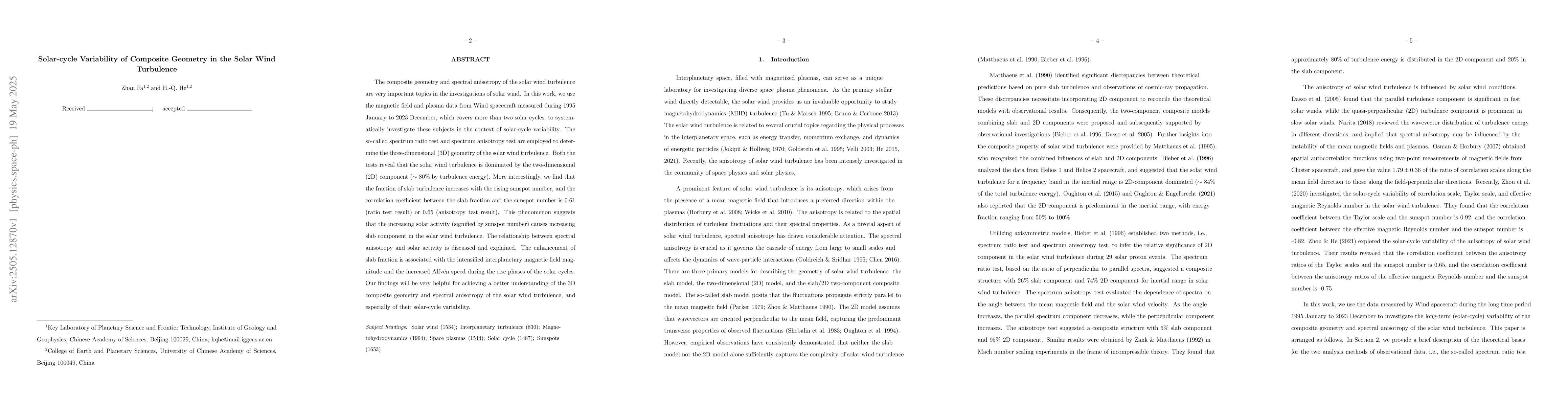 The study utilized magnetic field and plasma data from the Wind spacecraft, spanning from 1995 to 2023, to investigate the composite geometry and spectral anisotropy of solar wind turbulence over more than two solar cycles.