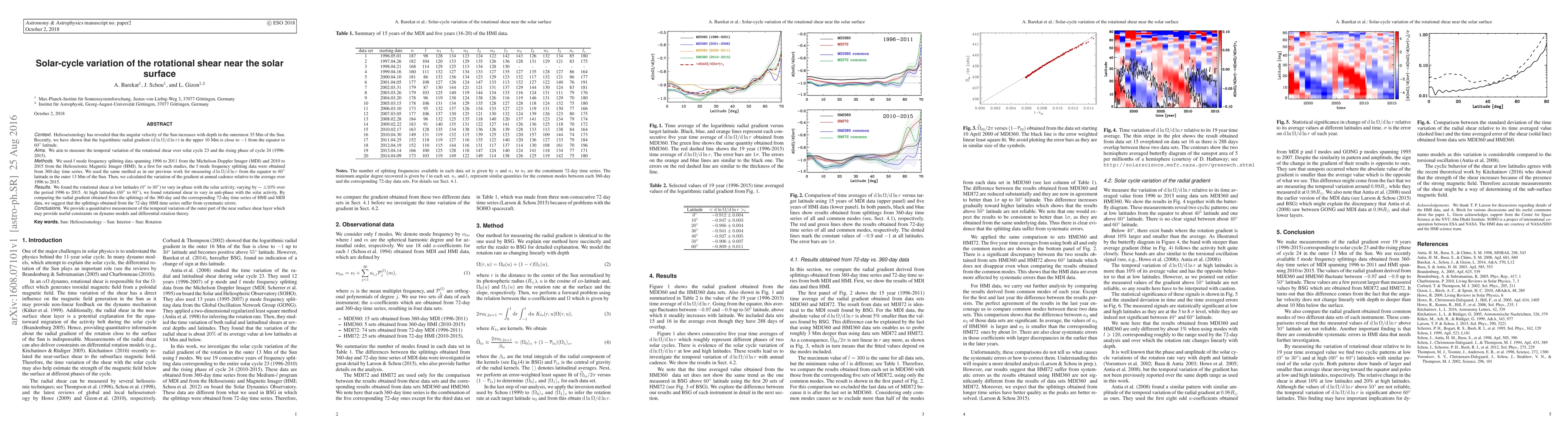Helioseismology has revealed that the angular velocity of the Sun increases with depth in the outermost 35 Mm of the Sun. Recently, we have shown that the logarithmic radial gradient ($\rm d\ln\Omega/\rm d\ln r $) in the upper 10~Mm is close to $-1$ from the equator to $60^\circ$ latitude.We aim to measure the temporal variation of the rotational shear over solar cycle 23 and the rising phase of cycle 24 (1996-2015). We used f mode frequency splitting data spanning 1996 to 2011 from the Michelson Doppler Imager (MDI) and 2010 to 2015 from the Helioseismic Magnetic Imager (HMI). In a first for such studies, the f mode frequency splitting data were obtained from 360-day time series. We used the same method as in our previous work for measuring $\rm d\ln\Omega/d\ln r $ from the equator to $80^\circ$ latitude in the outer 13~Mm of the Sun. Then, we calculated the variation of the gradient at annual cadence relative to the average over 1996 to 2015. We found the rotational shear at low latitudes ($0^\circ$ to $30^\circ$) to vary in-phase with the solar activity, varying by $\sim \pm 10$\% over the period 1996 to 2015. At high latitudes ($60^\circ$ to $80^\circ$), we found rotational shear to vary in anti-phase with the solar activity. By comparing the radial gradient obtained from the splittings of the 360-day and the corresponding 72-day time series of HMI and MDI data, we suggest that the splittings obtained from the 72-day HMI time series suffer from systematic errors. We provide a quantitative measurement of the temporal variation of the outer part of the near surface shear layer which may provide useful constraints on dynamo models and differential rotation theory.