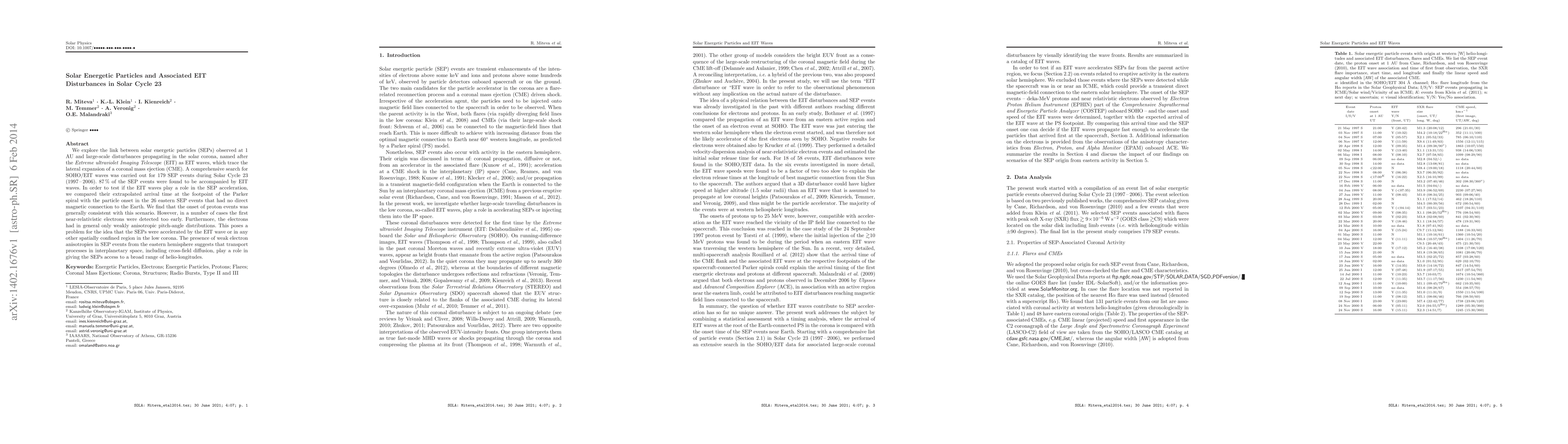 Most solar energetic particles (SEPs) were found to be accompanied by EIT waves during Solar Cycle 23, but the presence of weak electron anisotropies suggests that transport processes in interplanetary space may play a role in SEP acceleration.