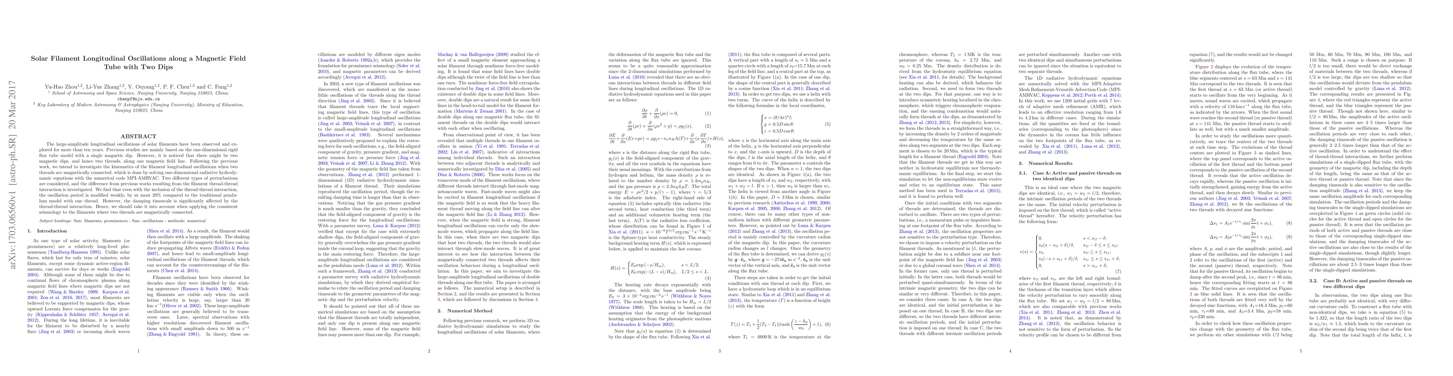 This paper investigates solar filament longitudinal oscillations along a magnetic field tube with two dips, using one-dimensional radiative hydrodynamic equations and numerical simulations. It finds that while thread-thread interaction slightly modifies the oscillation period, it significantly affects the damping timescale, emphasizing the importance of considering such interactions in filament seismology.