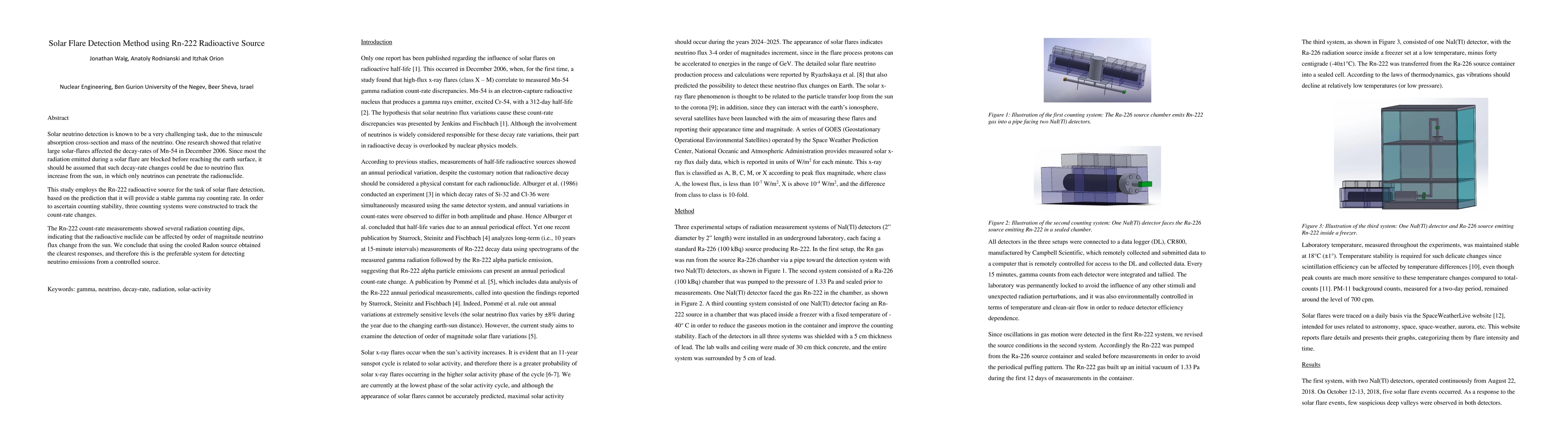 Researchers used Rn-222 as a radioactive source to detect solar flares, finding that changes in its decay rate indicate neutrino flux increases from the sun. The study suggests using a cooled Radon source for detecting neutrino emissions.