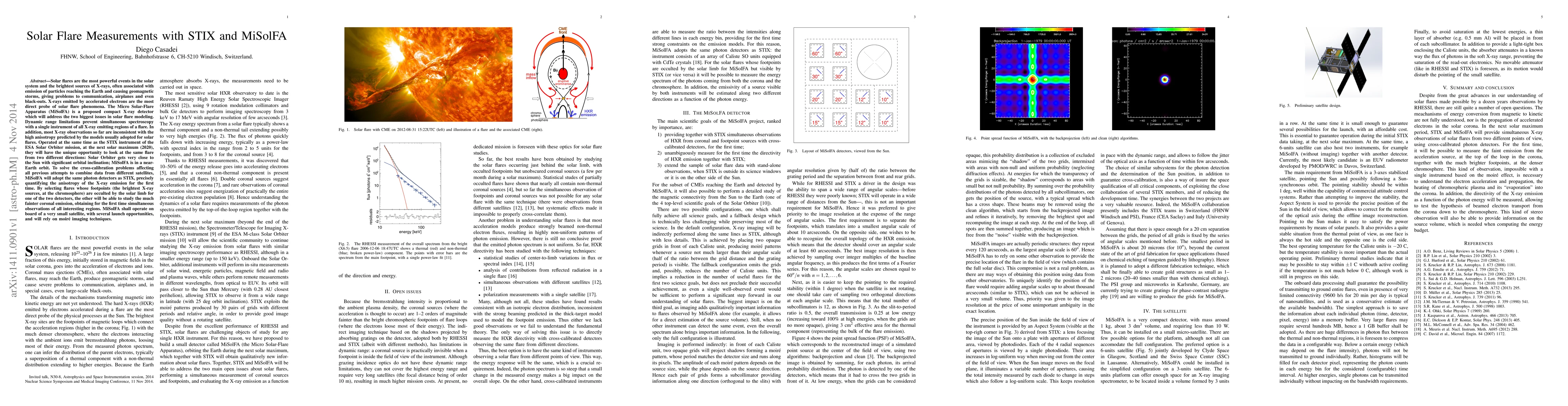 This paper discusses the use of the STIX instrument on the ESA Solar Orbiter mission and the proposed MiSolFA compact X-ray detector to measure solar flares. MiSolFA aims to address limitations in dynamic range and anisotropy modeling by providing simultaneous observations from different orbits, thus improving the understanding of solar flare phenomena.