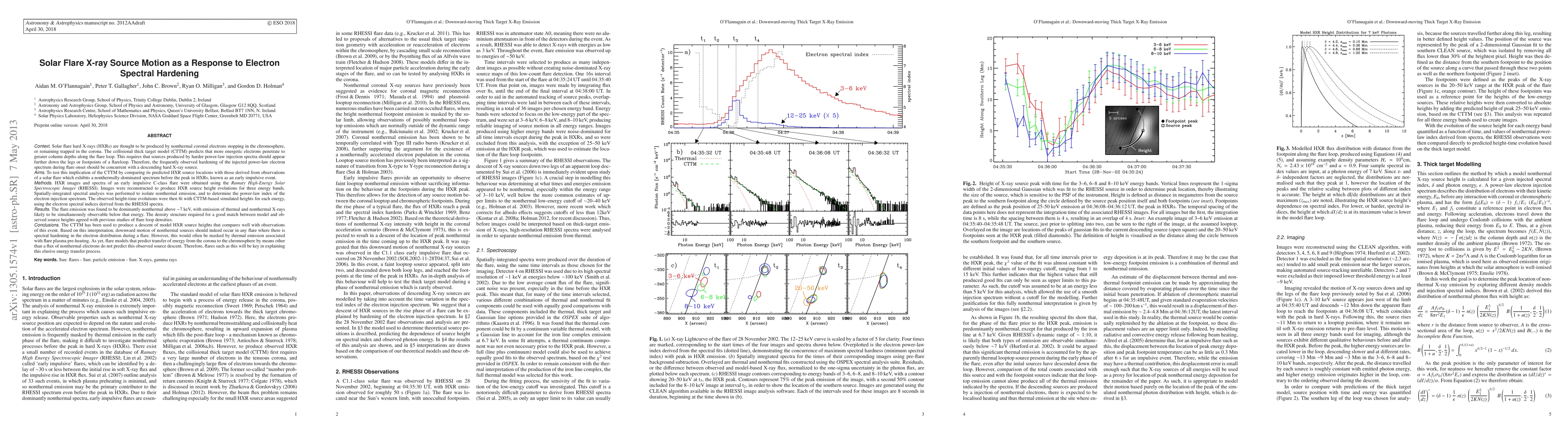 This paper investigates the motion of hard X-ray sources in solar flares in response to electron spectral hardening, using RHESSI observations of an early impulsive event. The study confirms that the collisional thick target model predicts a descending hard X-ray source concurrent with spectral hardening, matching observed data.