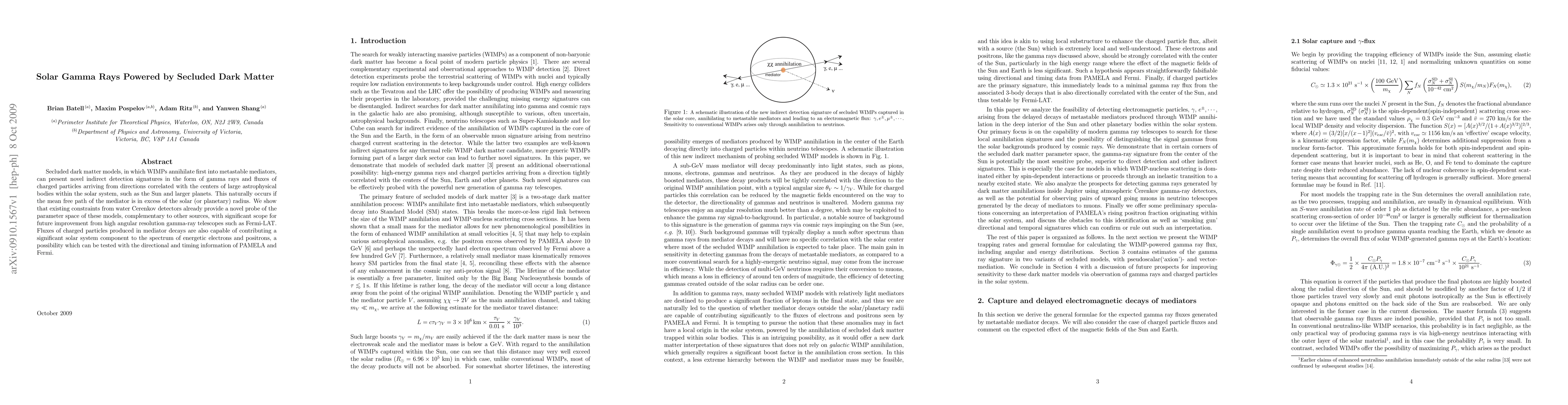 This paper explores secluded dark matter models where WIMPs annihilate into metastable mediators, predicting gamma rays and charged particles from the Sun and large planets. Existing water Cerenkov detectors already probe these models, with future high-resolution gamma-ray telescopes like Fermi-LAT offering significant improvement. Additionally, mediator decay fluxes may contribute to the solar system's energetic electron and positron spectrum, testable via PAMELA and Fermi data.