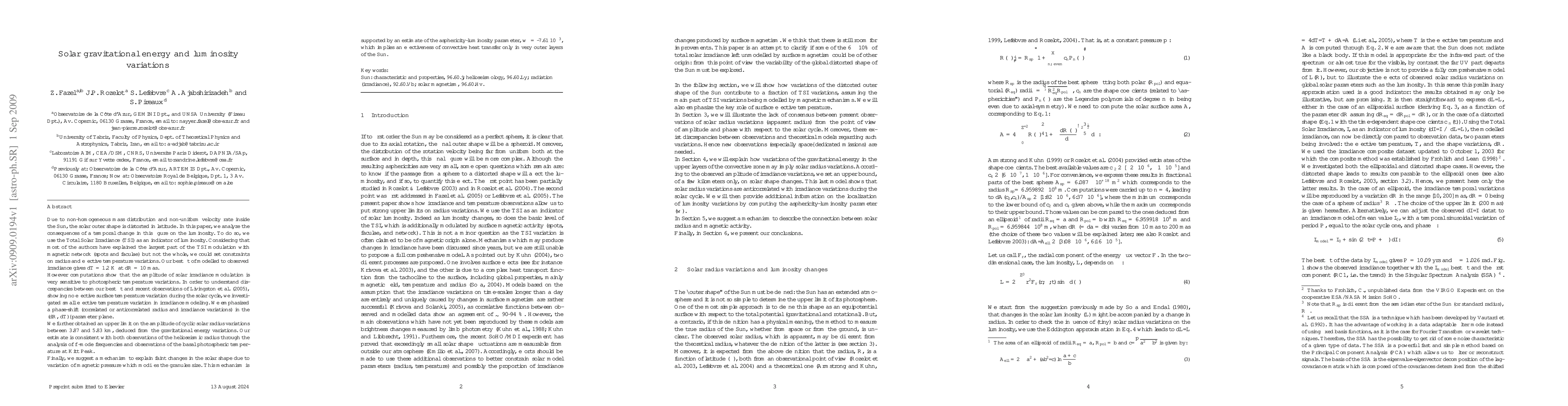 Due to non-homogeneous mass distribution and non-uniform velocity rate inside the Sun, the solar outer shape is distorted in latitude. In this paper, we analyze the consequences of a temporal change in this figure on the luminosity. To do so, we use the Total Solar Irradiance (TSI) as an indicator of luminosity. Considering that most of the authors have explained the largest part of the TSI modulation with magnetic network (spots and faculae) but not the whole, we could set constraints on radius and effective temperature variations (dR, dT). However computations show that the amplitude of solar irradiance modulation is very sensitive to photospheric temperature variations. In order to understand discrepancies between our best fit and recent observations of Livingston et al. (2005), showing no effective surface temperature variation during the solar cycle, we investigated small effective temperature variation in irradiance modeling. We emphasized a phase-shift (correlated or anticorrelated radius and irradiance variations) in the (dR, dT)-parameter plane. We further obtained an upper limit on the amplitude of cyclic solar radius variations, deduced from the gravitational energy variations. Our estimate is consistent with both observations of the helioseismic radius through the analysis of f-mode frequencies and observations of the basal photospheric temperature at Kitt Peak. Finally, we suggest a mechanism to explain faint changes in the solar shape due to variation of magnetic pressure which modifies the granules size. This mechanism is supported by our estimate of the asphericity-luminosity parameter, which implies an effectiveness of convective heat transfer only in very outer layers of the Sun.