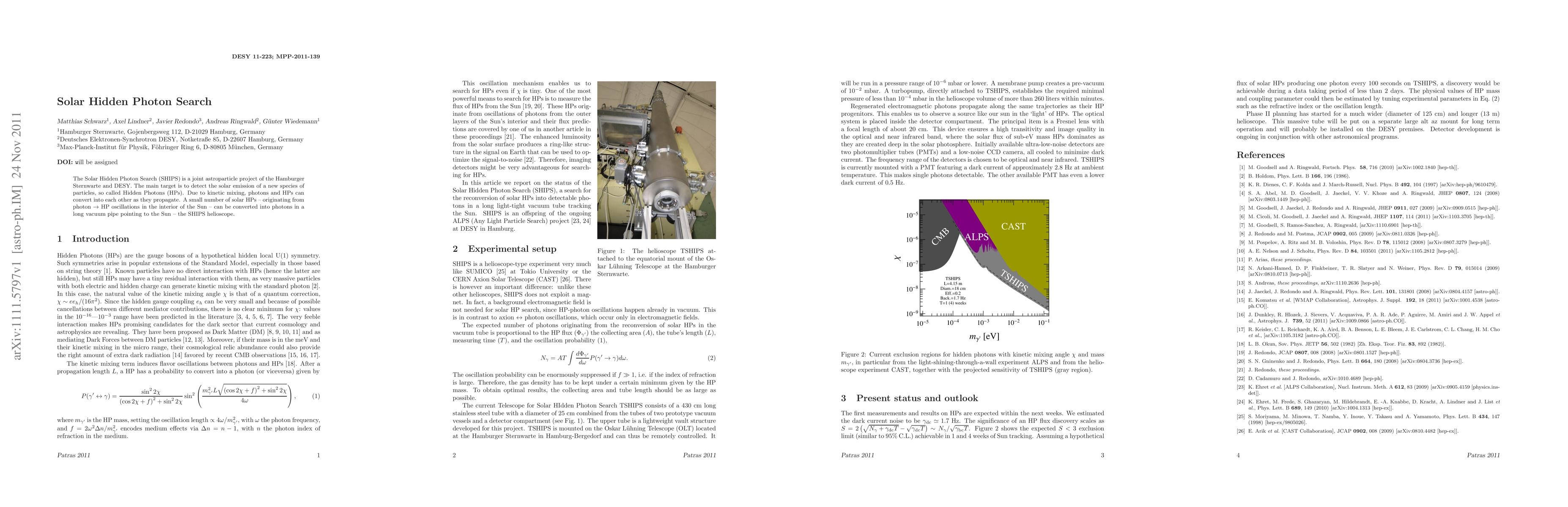 The Solar Hidden Photon Search (SHIPS) aims to detect solar emissions of Hidden Photons (HPs) via their oscillation into photons in a helioscope. The project leverages kinetic mixing to convert a small number of HPs from the Sun into detectable photons.