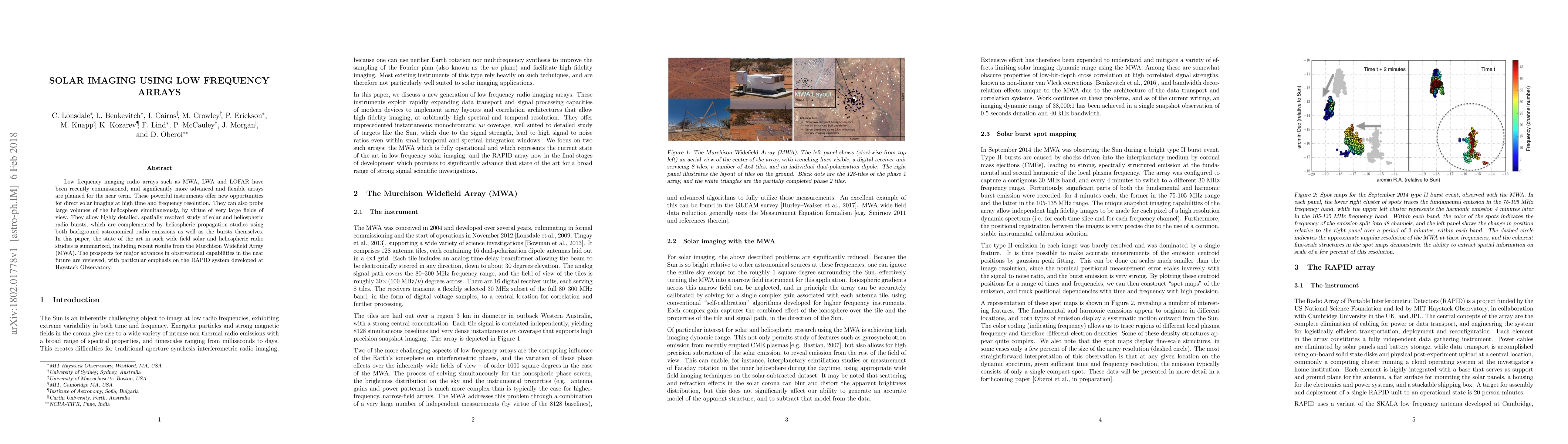 This paper reviews the current state and future prospects of solar and heliospheric radio imaging using low-frequency arrays like MWA, LWA, and LOFAR, highlighting the Murchison Widefield Array's recent results and the potential advancements offered by the RAPID system at Haystack Observatory.
