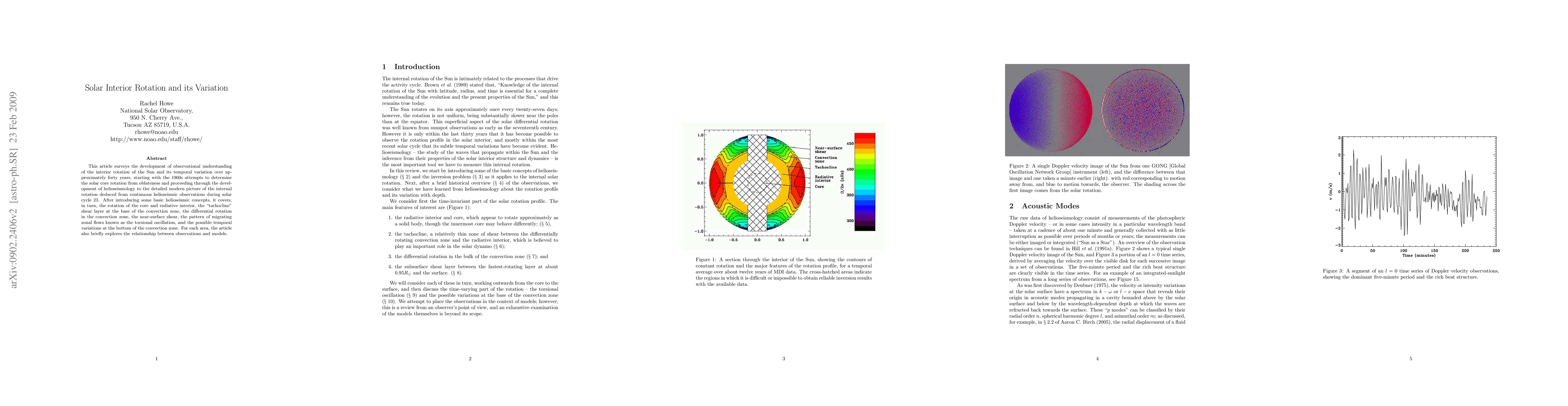 This article surveys the development of observational understanding of the interior rotation of the Sun and its temporal variation over approximately forty years, starting with the 1960s attempts to determine the solar core rotation from oblateness and proceeding through the development of helioseismology to the detailed modern picture of the internal rotation deduced from continuous helioseismic observations during solar cycle 23. After introducing some basic helioseismic concepts, it covers, in turn, the rotation of the core and radiative interior, the "tachocline" shear layer at the base of the convection zone, the differential rotation in the convection zone, the near-surface shear, the pattern of migrating zonal flows known as the torsional oscillation, and the possible temporal variations at the bottom of the convection zone. For each area, the article also briefly explores the relationship between observations and models.