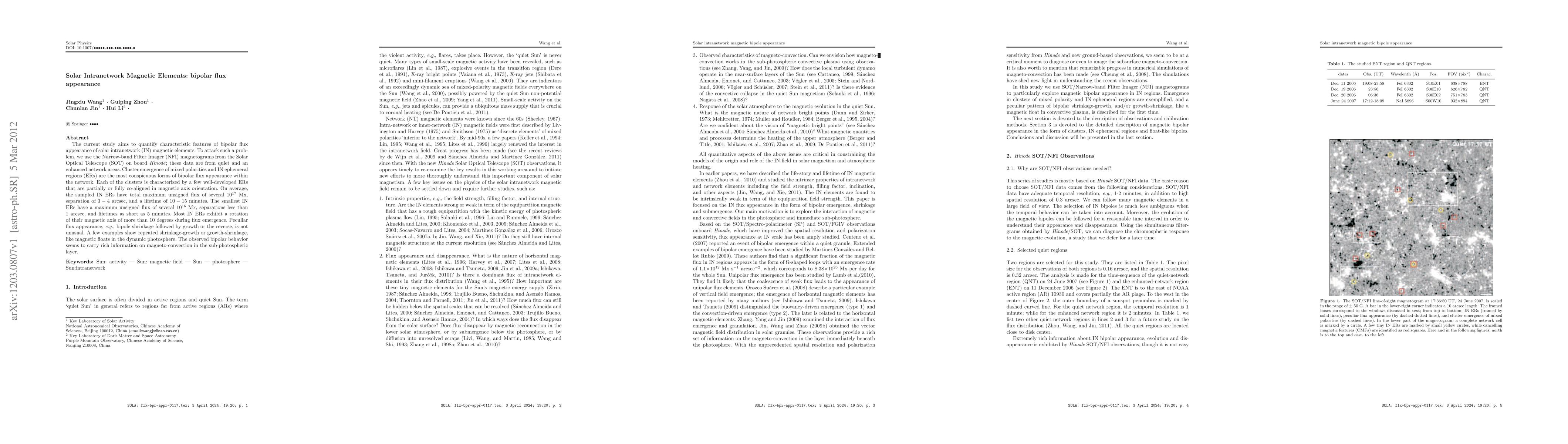 The current study aims to quantify characteristic features of bipolar flux appearance of solar intranetwork (IN) magnetic elements. To attack such a problem, we use the Narrow-band Filter Imager (NFI) magnetograms from the Solar Optical Telescope (SOT) on board \emph{Hinode}; these data are from quiet and an enhanced network areas. Cluster emergence of mixed polarities and IN ephemeral regions (ERs) are the most conspicuous forms of bipolar flux appearance within the network. Each of the clusters is characterized by a few well-developed ERs that are partially or fully co-aligned in magnetic axis orientation. On average, the sampled IN ERs have total maximum unsigned flux of several 10^{17} Mx, separation of 3-4 arcsec, and a lifetime of 10-15 minutes. The smallest IN ERs have a maximum unsigned flux of several 10^{16} Mx, separations less than 1 arcsec, and lifetimes as short as 5 minutes. Most IN ERs exhibit a rotation of their magnetic axis of more than 10 degrees during flux emergence. Peculiar flux appearance, e.g., bipole shrinkage followed by growth or the reverse, is not unusual. A few examples show repeated shrinkage-growth or growth-shrinkage, like magnetic floats in the dynamic photosphere. The observed bipolar behavior seems to carry rich information on magneto-convection in the sub-photospheric layer.