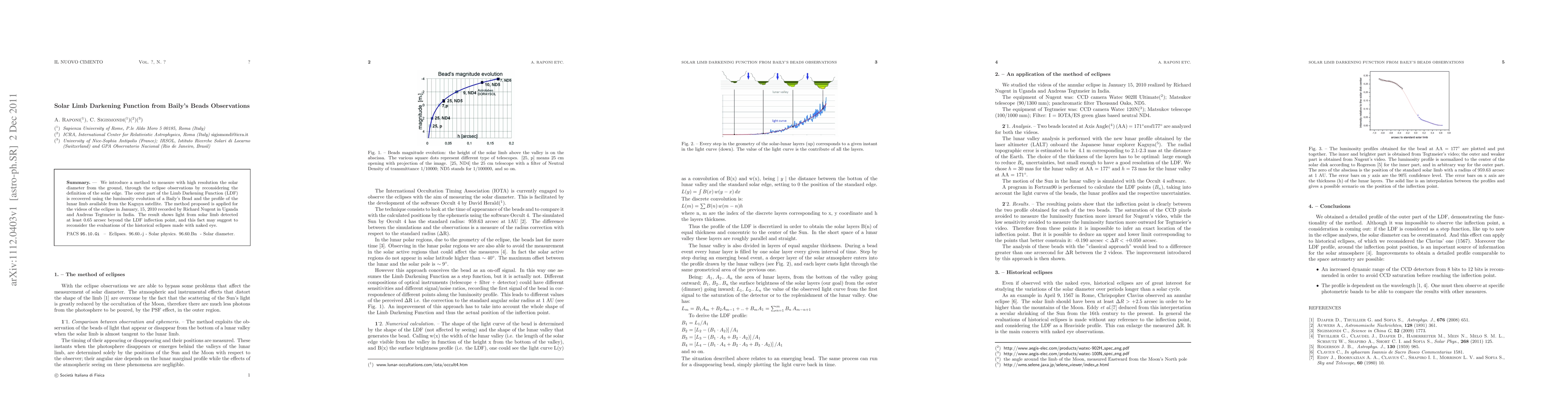 This paper proposes a high-resolution method to measure the solar diameter using Baily's Beads observations during eclipses, recovering the outer limb darkening function. The results indicate light from the solar limb extends 0.65 arcsec beyond the limb darkening inflection point, suggesting a reevaluation of historical eclipse observations.