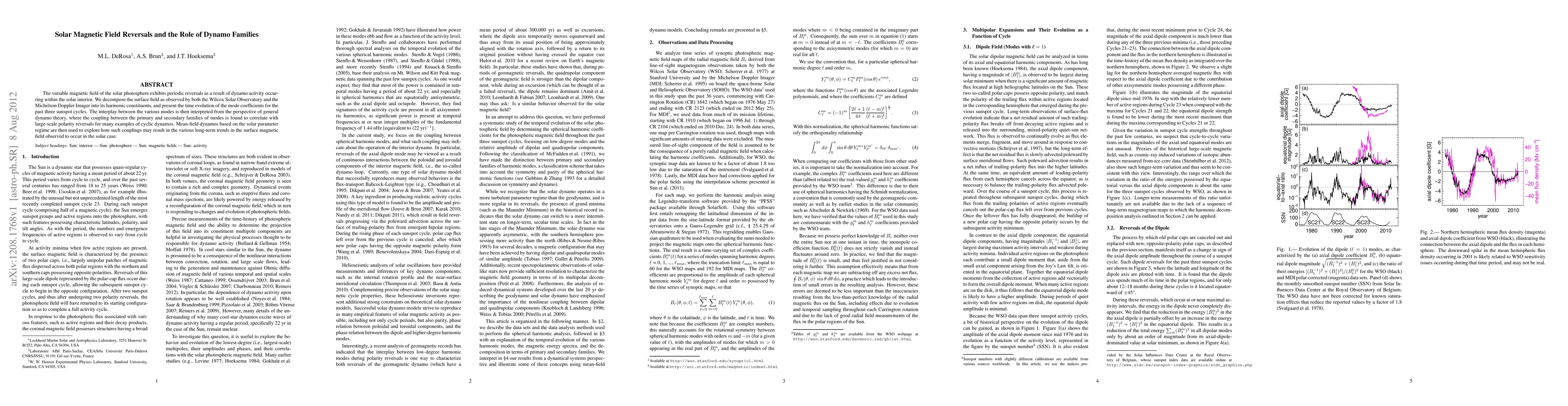 The variable magnetic field of the solar photosphere exhibits periodic reversals as a result of dynamo activity occurring within the solar interior. We decompose the surface field as observed by both the Wilcox Solar Observatory and the Michelson Doppler Imager into its harmonic constituents, and present the time evolution of the mode coefficients for the past three sunspot cycles. The interplay between the various modes is then interpreted from the perspective of general dynamo theory, where the coupling between the primary and secondary families of modes is found to correlate with large-scale polarity reversals for many examples of cyclic dynamos. Mean-field dynamos based on the solar parameter regime are then used to explore how such couplings may result in the various long-term trends in the surface magnetic field observed to occur in the solar case.