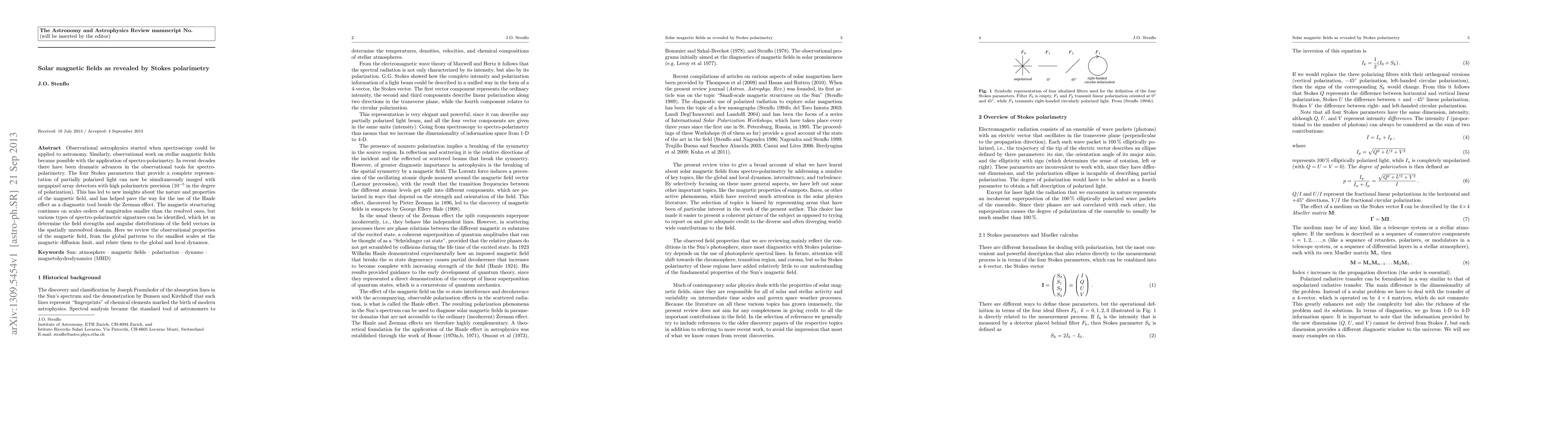 This paper reviews the observational properties of solar magnetic fields using spectro-polarimetry, revealing new insights into their nature and properties. High-resolution imaging has led to discoveries about field strengths and angular distributions on smaller scales than previously thought.