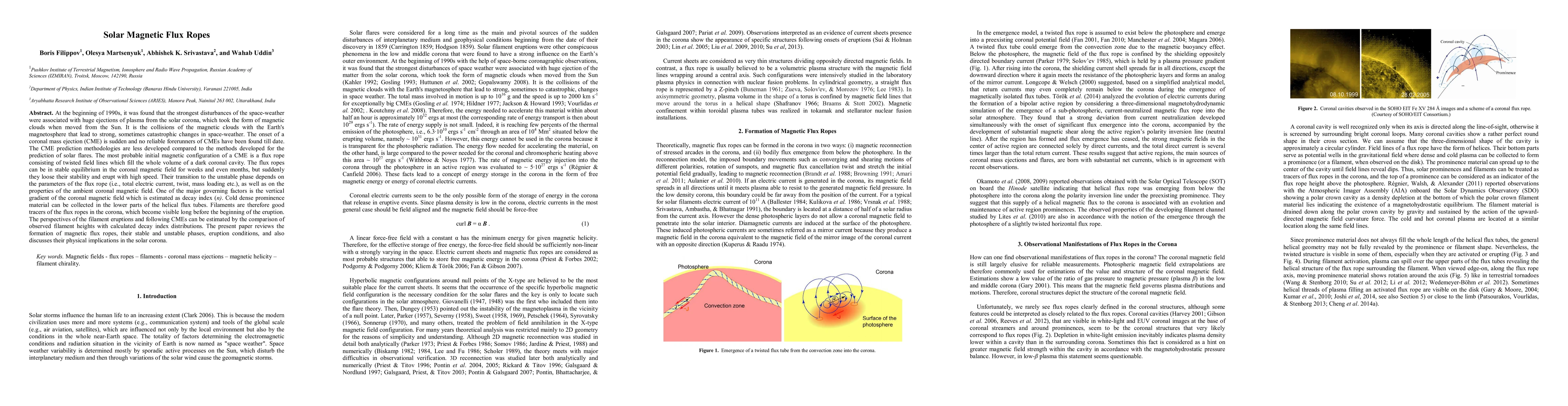 This paper reviews the formation and dynamics of solar magnetic flux ropes, which are twisted field lines that can remain stable for extended periods before erupting as coronal mass ejections (CMEs). The transition to instability is influenced by factors such as the flux rope's twist and the ambient coronal magnetic field's vertical gradient, with filaments serving as tracers for their presence.