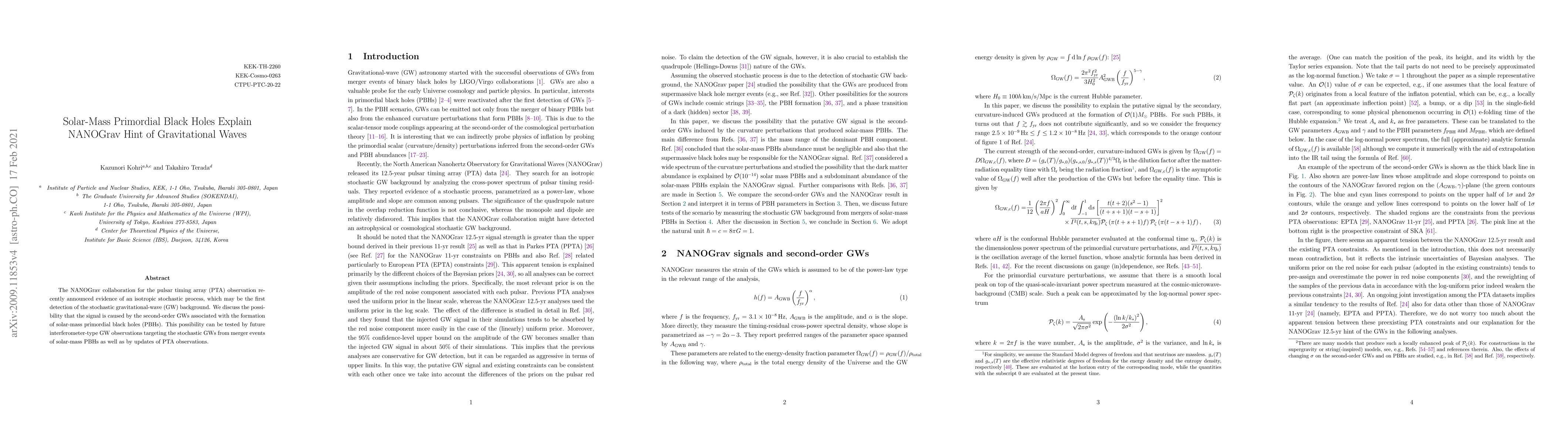 The NANOGrav collaboration detected an isotropic stochastic process potentially indicating the first gravitational wave background, which could be explained by solar-mass primordial black holes. Future gravitational wave and pulsar timing array observations could confirm this hypothesis by detecting the gravitational waves from merging PBHs.