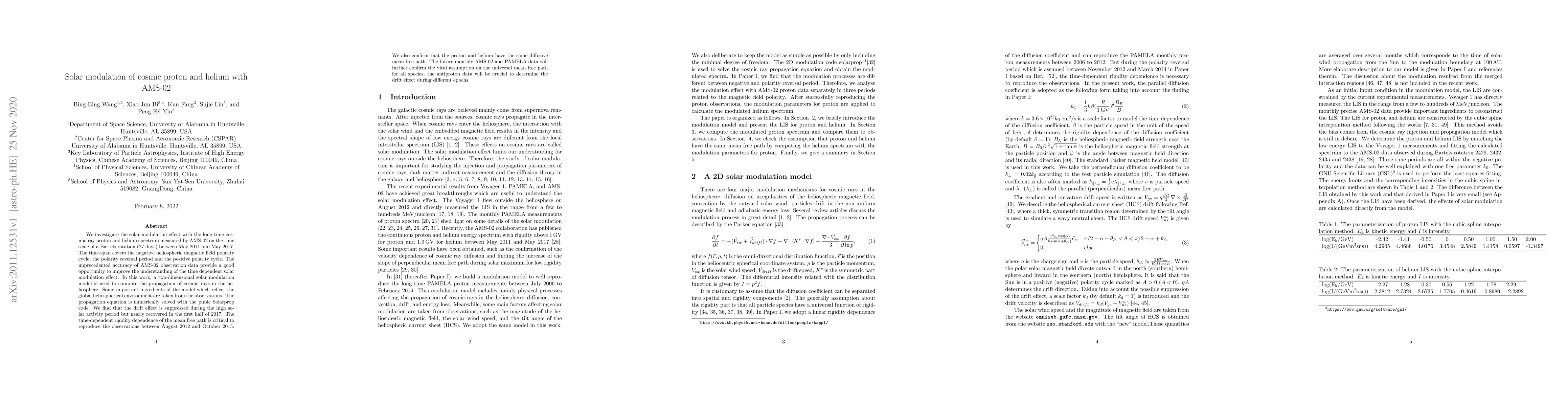 This paper examines the solar modulation effect on cosmic ray protons and helium using AMS-02 data from May 2011 to May 2017, employing a two-dimensional model to capture heliospheric influences. It finds that solar activity suppresses drift effects but they recover in 2017, highlighting the importance of time-dependent mean free path rigidity dependence.